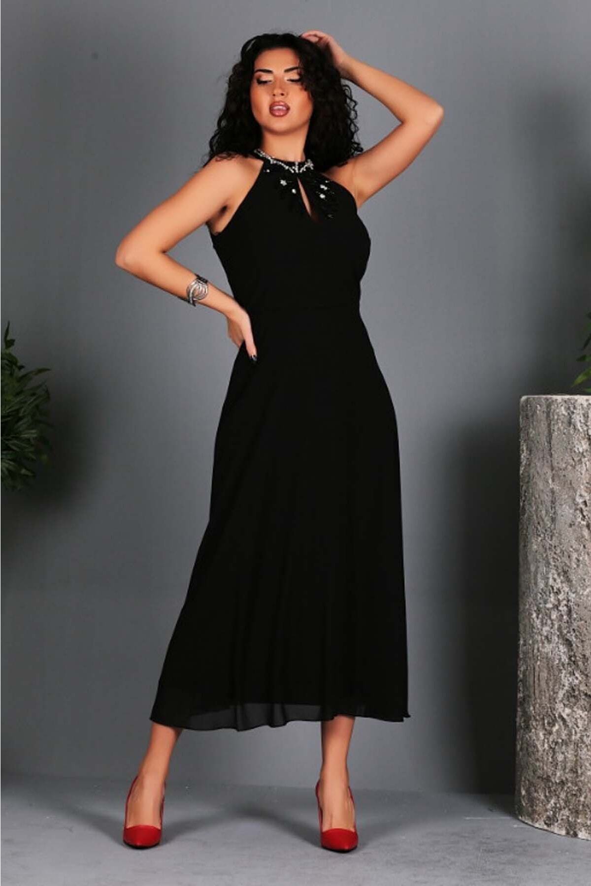 Kadın Beyaz Boyundan Bağlı Nakışlı Abiye Elbise Kadın Beyaz Boyundan Bağlı Nakışlı Abiye Elbise ABY-1158 42