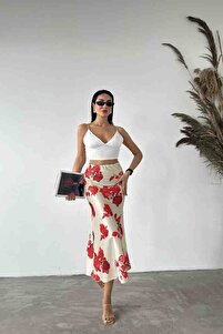 Lüks Kalite Beli Lastikli Maxi Boy Uzun Saten Etek Lüks Kalite Beli Lastikli Maxi Boy Uzun Saten Etek M21077 L