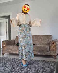 Lüks Kalite Beli Lastikli Maxi Boy Uzun Saten Etek Lüks Kalite Beli Lastikli Maxi Boy Uzun Saten Etek M21077 L