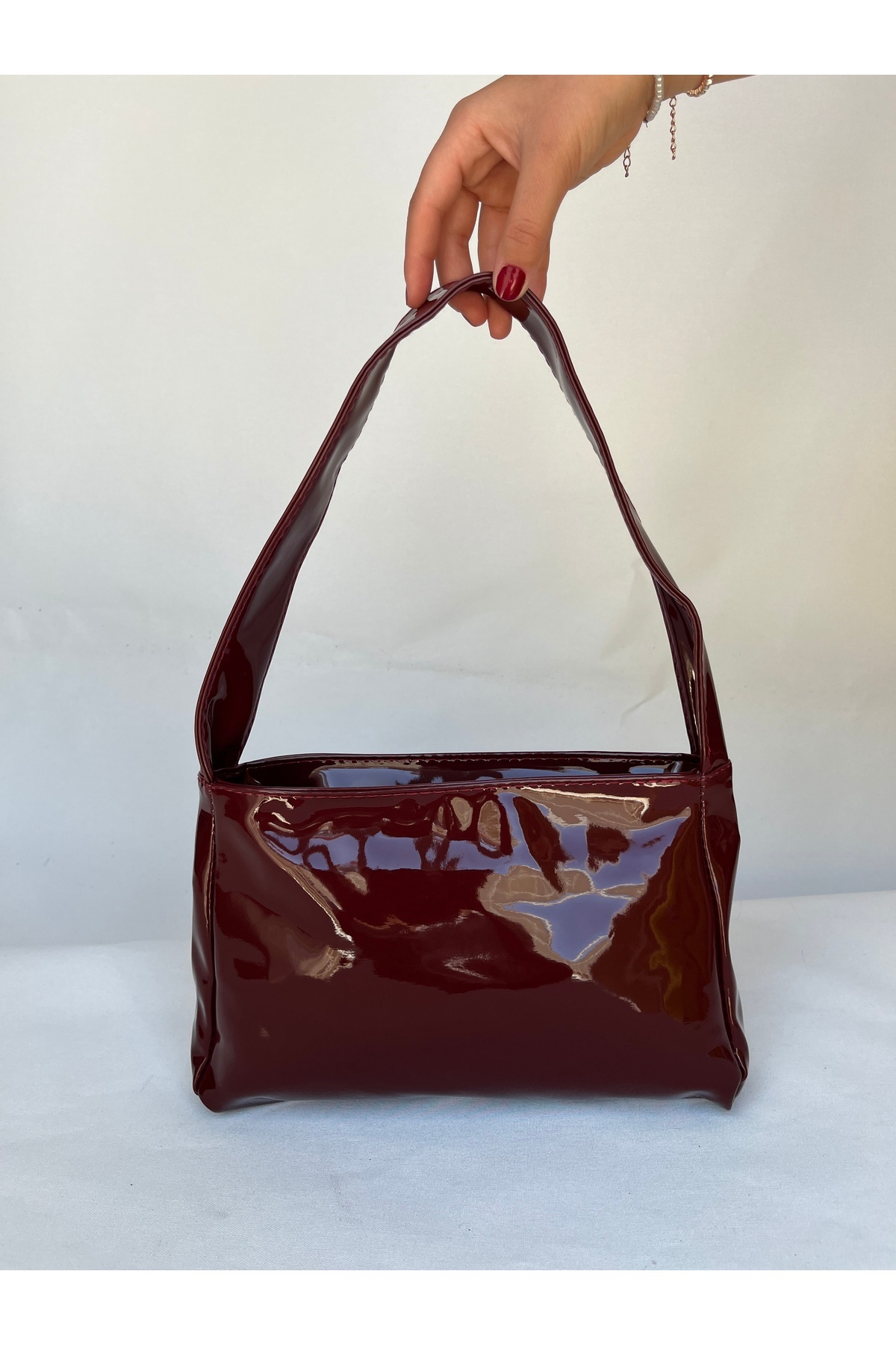 Parlak Beyaz Orta Boy Rugan Kadın Omuz Çantası tek kolon askılı rugan çanta fermuar kapamalı vişne Parlak Beyaz Orta Boy Rugan Kadın Omuz Çantası tek kolon askılı rugan çanta fermuar kapamalı vişne mlk46467373 تک سایز