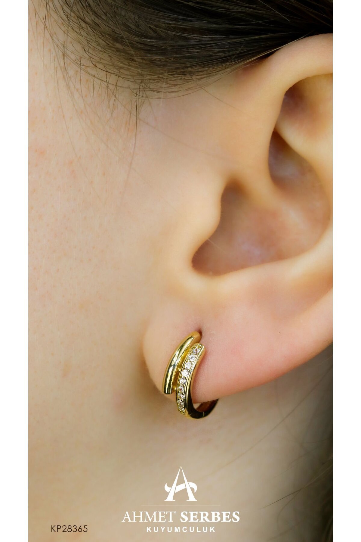 Üç Sıra Taşlı Halka Altın Küpe Üç Sıra Taşlı Halka Altın Küpe BYD584 تک سایز