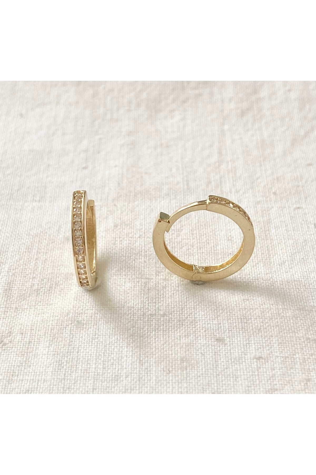 Çift Sıralı Baget Taşlı Halka Altın Küpe Çift Sıralı Baget Taşlı Halka Altın Küpe BYD606 تک سایز