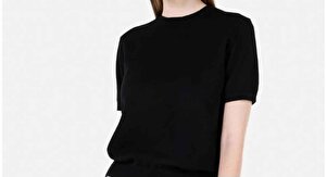 Normal Kesim Bisiklet Yaka Siyah Kadın Kısa Kol Kazak Normal Kesim Bisiklet Yaka Siyah Kadın Kısa Kol Kazak .CL1068077_Q1.V1_BLK L