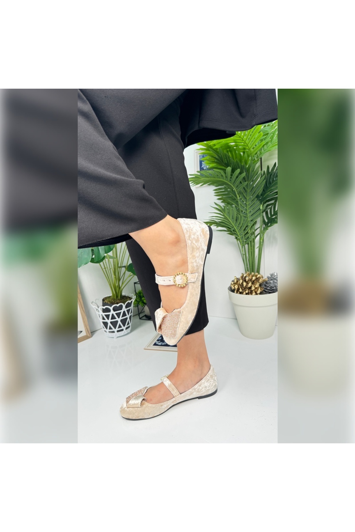 Günlük Kadın Bej Kadife Taşlı Balerin Babet Tek Bant Tokalı Oval Burun Tırtıklı Taban Ayakkabı 285 Günlük Kadın Bej Kadife Taşlı Balerin Babet Tek Bant Tokalı Oval Burun Tırtıklı Taban Ayakkabı 285 PRA-10603091-869805 40