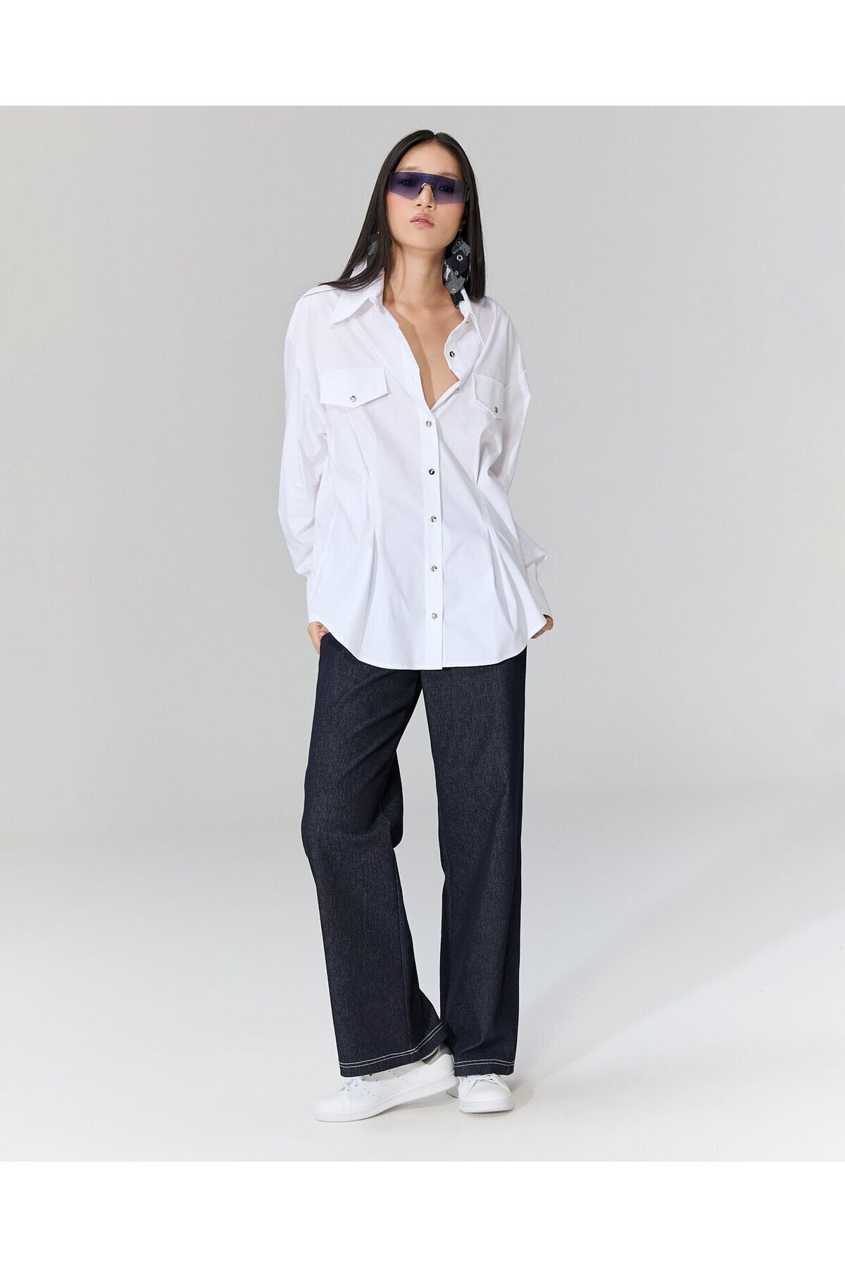 Trend Beyaz Boydan Fermuarlı Oversize Gömlek Trend Beyaz Boydan Fermuarlı Oversize Gömlek bqr-000435 M