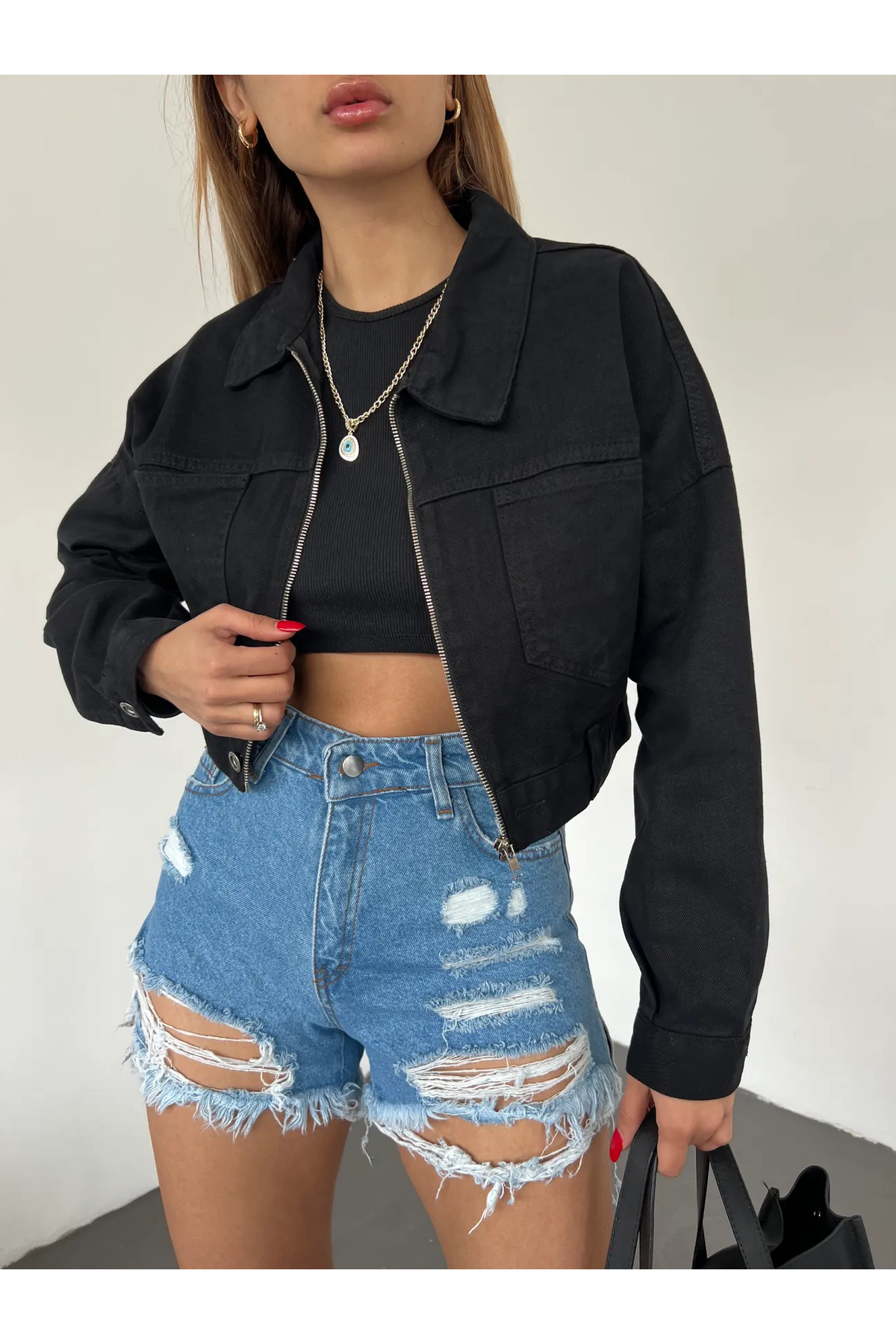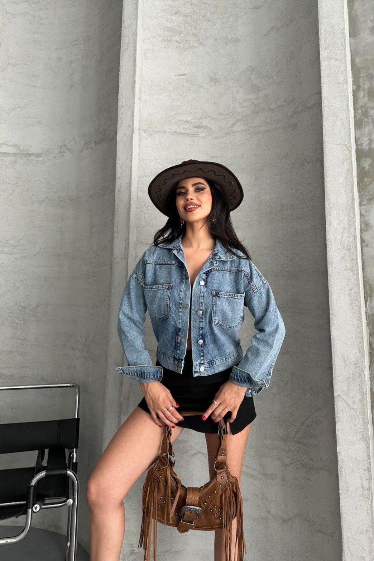 Çift Cepli Denim Crop Ceket Çift Cepli Denim Crop Ceket TYPAVİA155 L