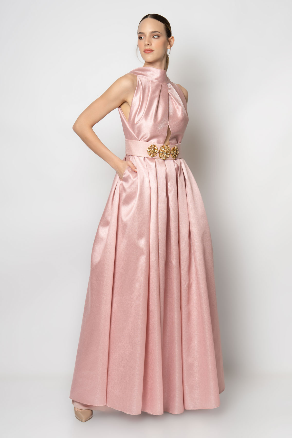 Drape yakalı straplez midi boy krep elbise Drape yakalı straplez midi boy krep elbise 7203 44