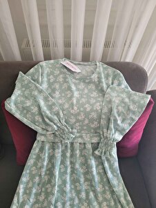Kadın Su Yeşili Çiçekli Yazlık Uzun Örme Elbise DD01322 Kadın Su Yeşili Çiçekli Yazlık Uzun Örme Elbise DD01322 42