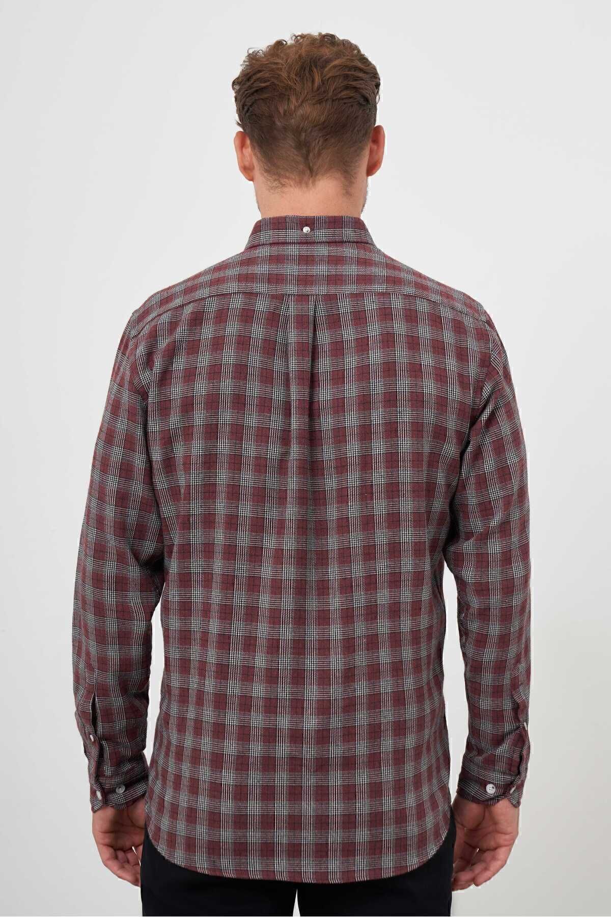Erkek Bordo Trend Oduncu Ekoseli Düğmeli Yaka Regular Fit Gömlek Erkek Bordo Trend Oduncu Ekoseli Düğmeli Yaka Regular Fit Gömlek 24KS004002 3XL