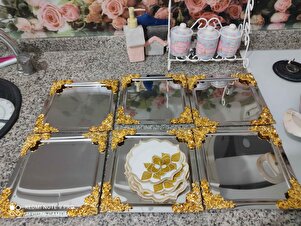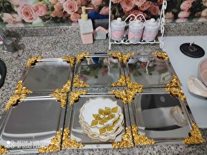 DEKORATİF PASLANMAZ ÇELİK KARE 6 ADET DÖRT KENAR GÜL AKSESUARLI SUNUM TEPSİSİ DEKORATİF PASLANMAZ ÇELİK KARE 6 ADET DÖRT KENAR GÜL AKSESUARLI SUNUM TEPSİSİ MNL22689 تک سایز