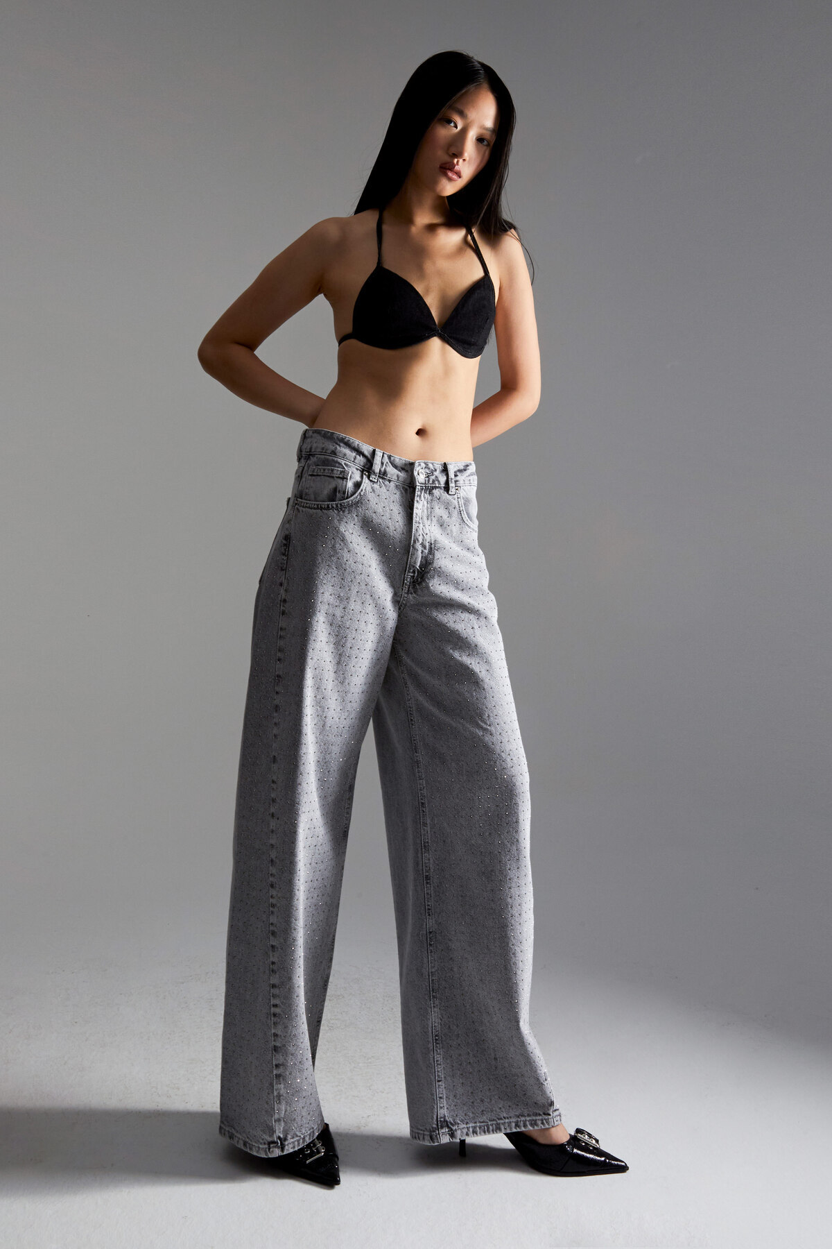 Kadın Mavi Renk Önü Ful Parlak Taşlı Palazzo Fit Denim Kadın Mavi Renk Önü Ful Parlak Taşlı Palazzo Fit Denim ITSBASIC 3110 42