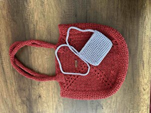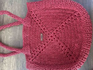 Kırmızı Hasır Kağıt Ip Kroşe Çanta Kırmızı Hasır Kağıt Ip Kroşe Çanta 000051 تک سایز
