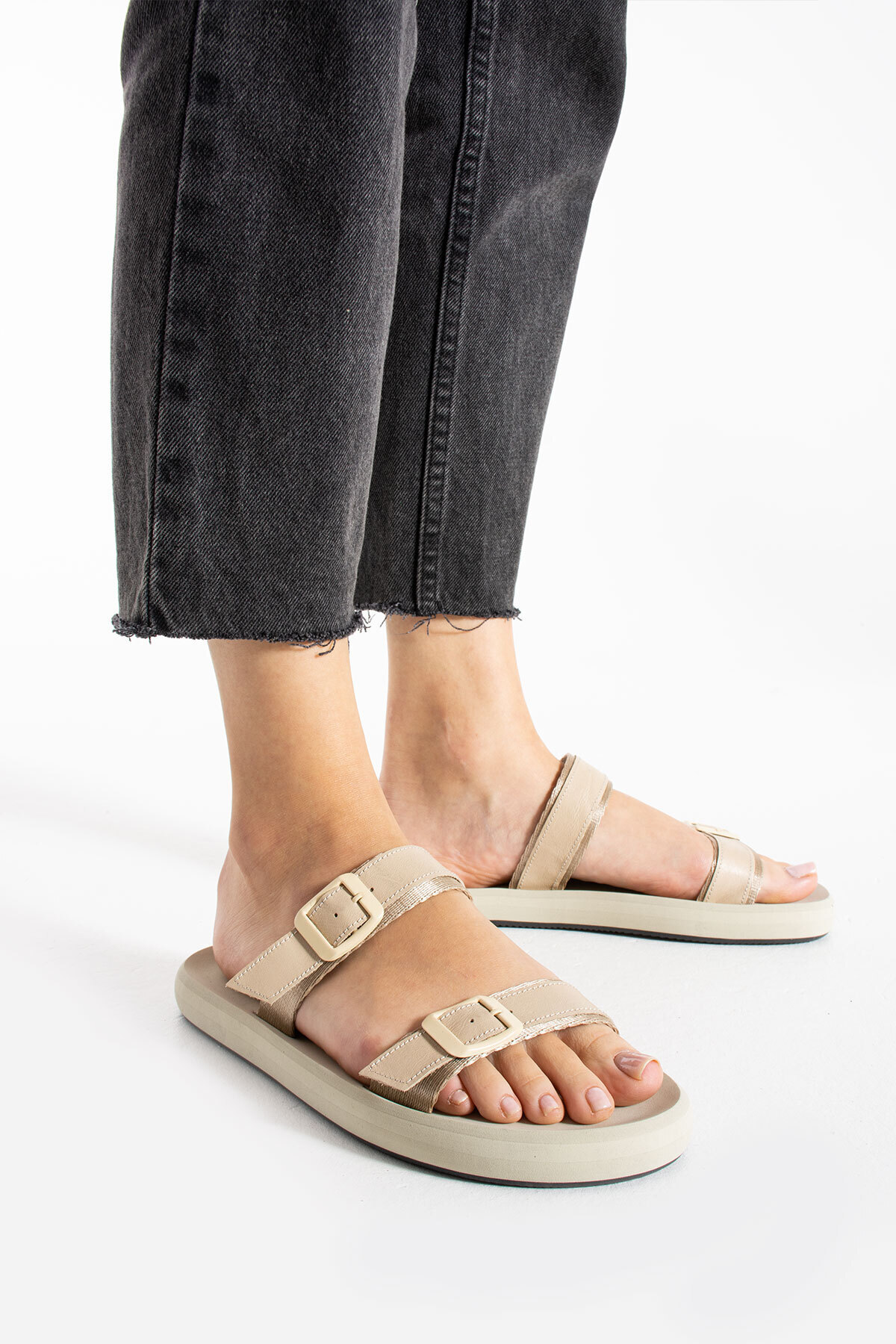 Gray Kadın Hakiki Deri Çift Tokalı Ayarlanabilir Tokalı Bej Terlik Gray Kadın Hakiki Deri Çift Tokalı Ayarlanabilir Tokalı Bej Terlik ARNW.010 42