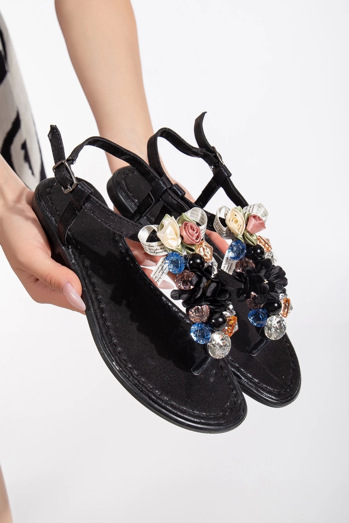 Kadın Yazlık Parmak Arası Sandalet Süslü Kadın Yazlık Parmak Arası Sandalet Süslü 40