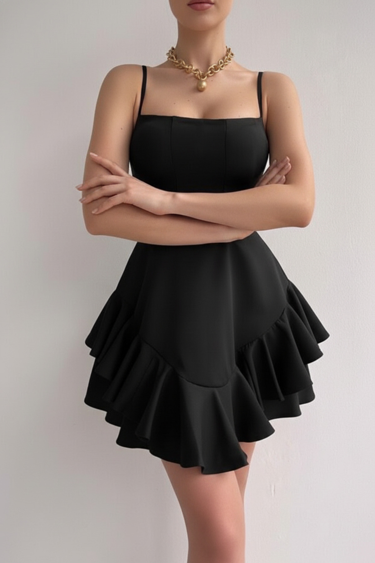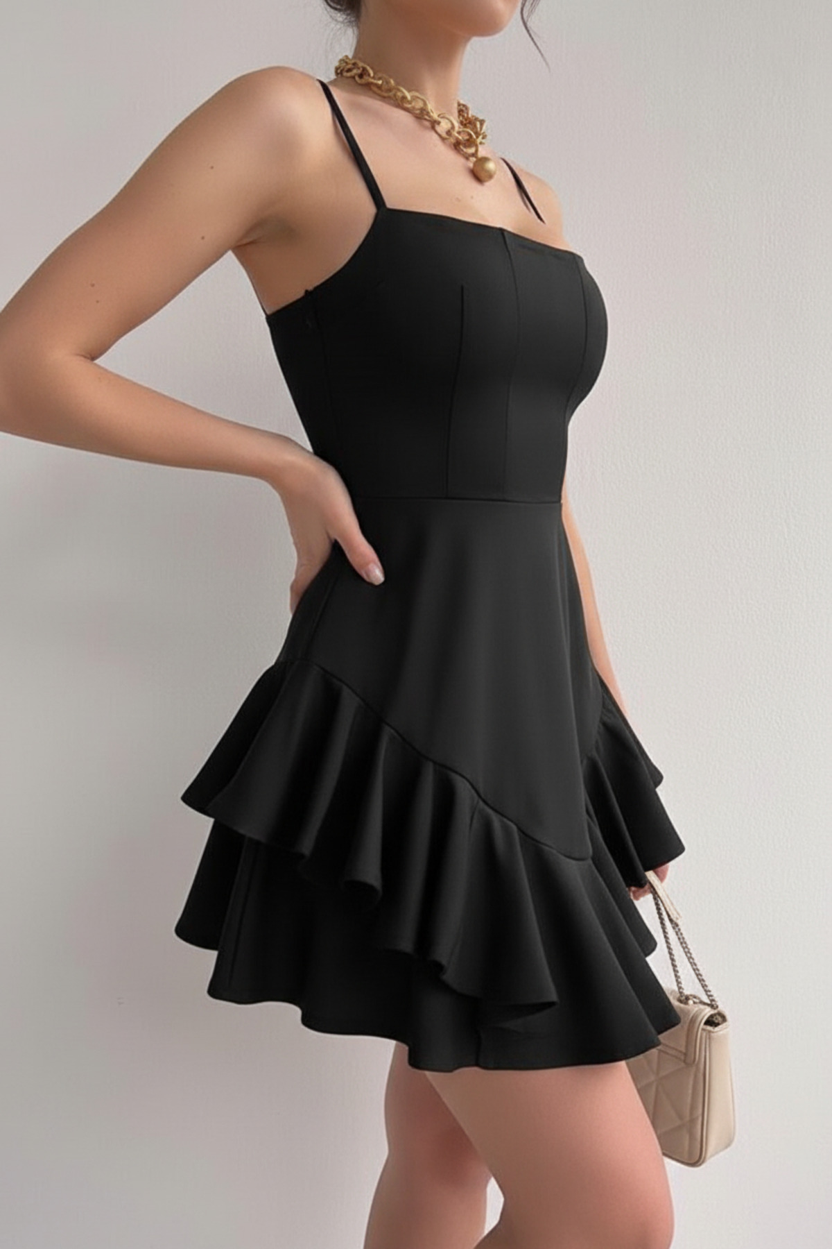 İnce Askılı Eteği Kat Detay Abiye Elbise Siyah Mezuniyet Elbisesi İnce Askılı Eteği Kat Detay Abiye Elbise Siyah Mezuniyet Elbisesi AB9205 XL