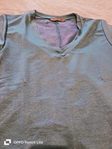 Kadın İndigo Derin V Yaka Modal Tuşeli Tişört TSH-19000773 Kadın İndigo Derin V Yaka Modal Tuşeli Tişört TSH-19000773 XL