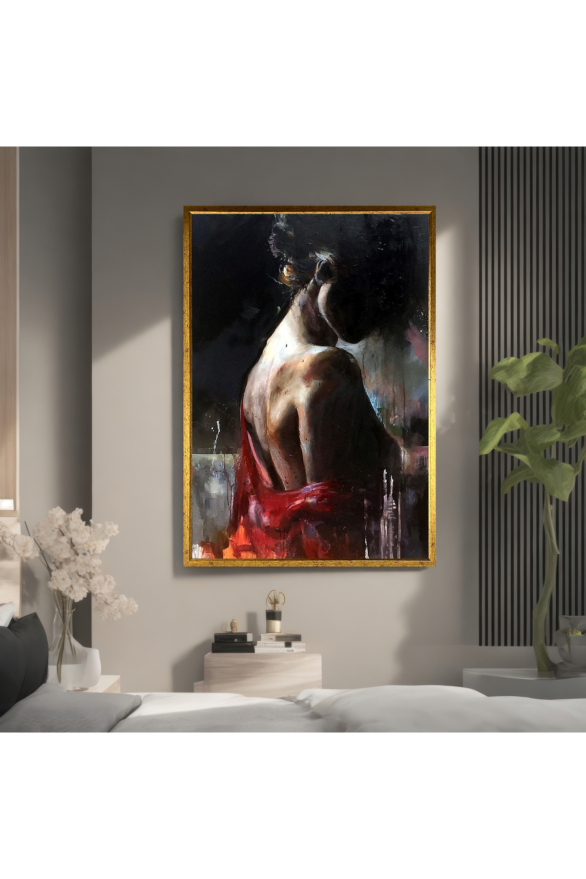 Sırtı Açık Kırmızı Elbiseli Kadın Kanvas Tablo, Dekoratif Kadın Resmi Sırtı Açık Kırmızı Elbiseli Kadın Kanvas Tablo, Dekoratif Kadın Resmi TCA-02807 100 x 150
