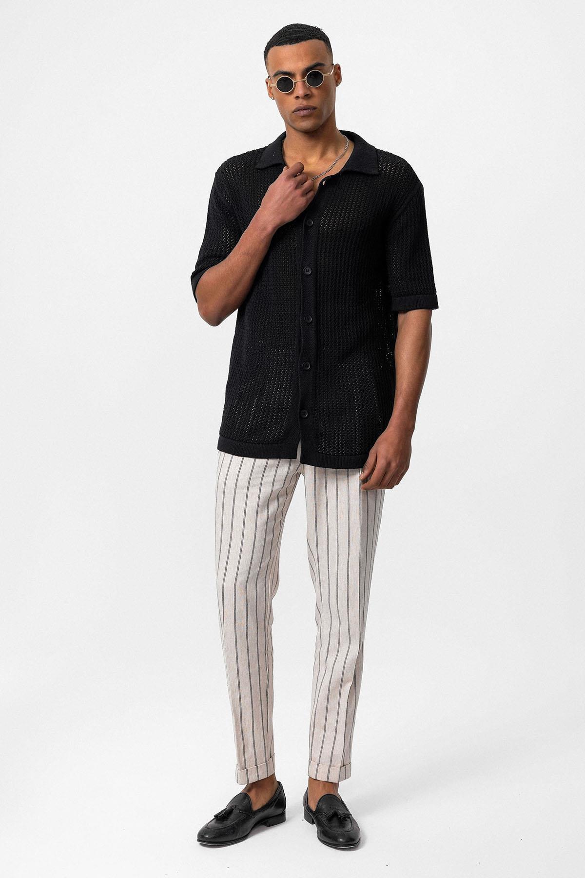 Siyah Kısa Kollu Ajurlu Erkek Gömlek Siyah Kısa Kollu Ajurlu Erkek Gömlek A24Y3126 XL