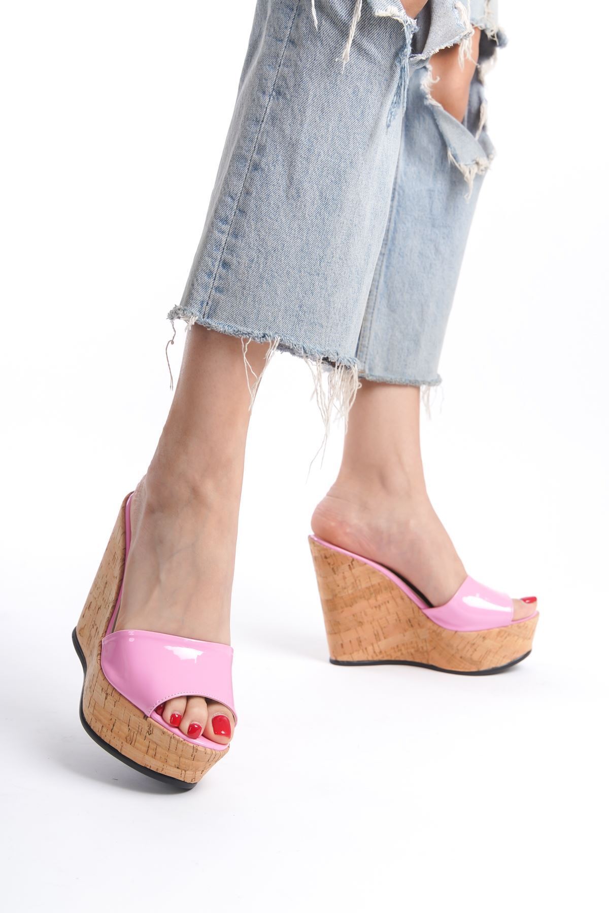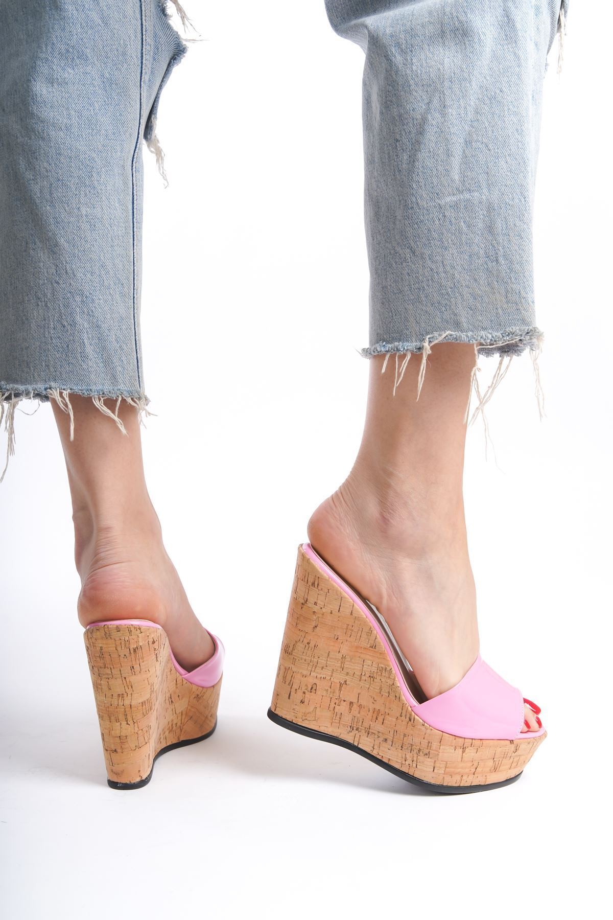 Hazel; Pembe ,12 cm Mantar Tabanlı Dolgu Topuklu Terlik Hazel; Pembe ,12 cm Mantar Tabanlı Dolgu Topuklu Terlik MZZ315 40