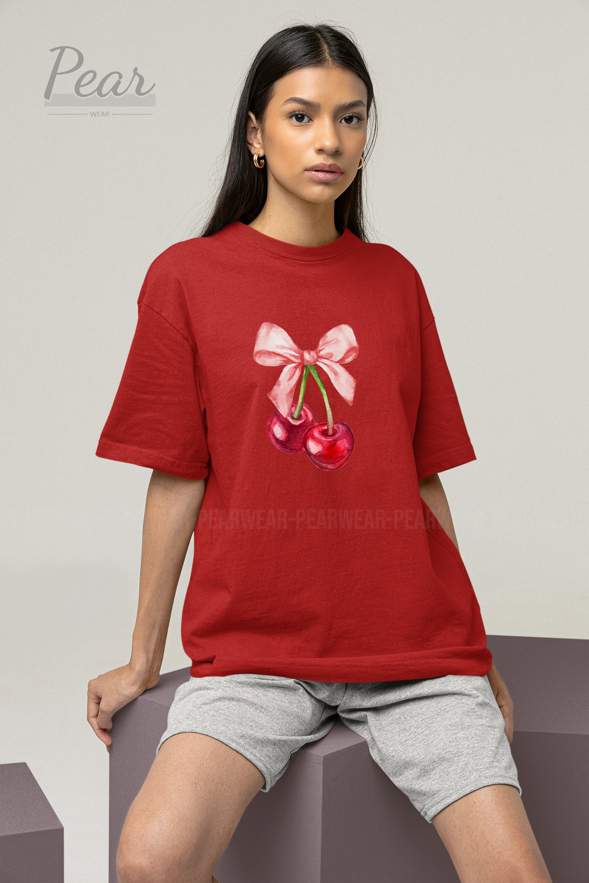 Kiraz Baskılı Unisex Tişört Oversize T-shirt Kiraz Baskılı Unisex Tişört Oversize T-shirt PEARWEAR-Kiraz XL