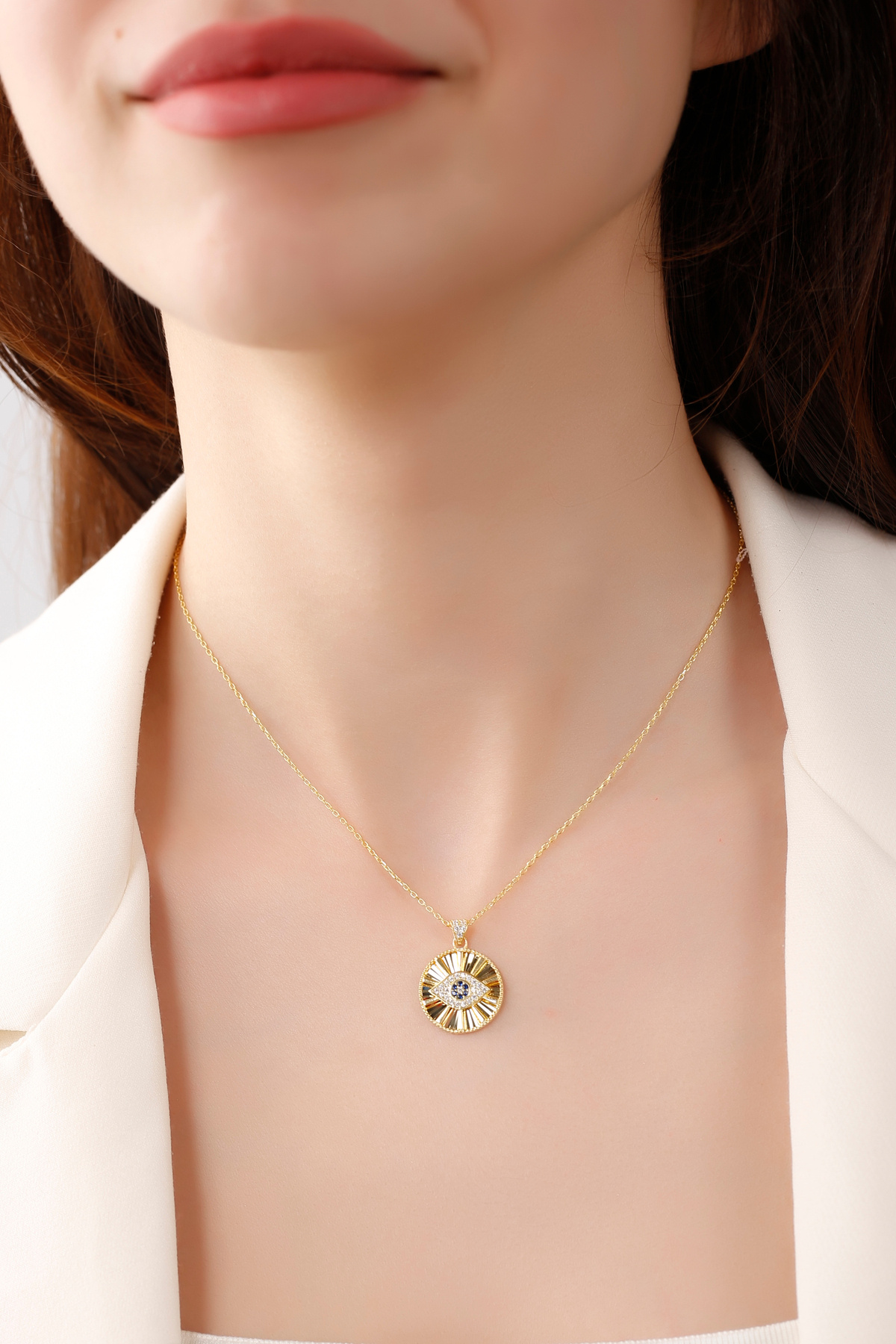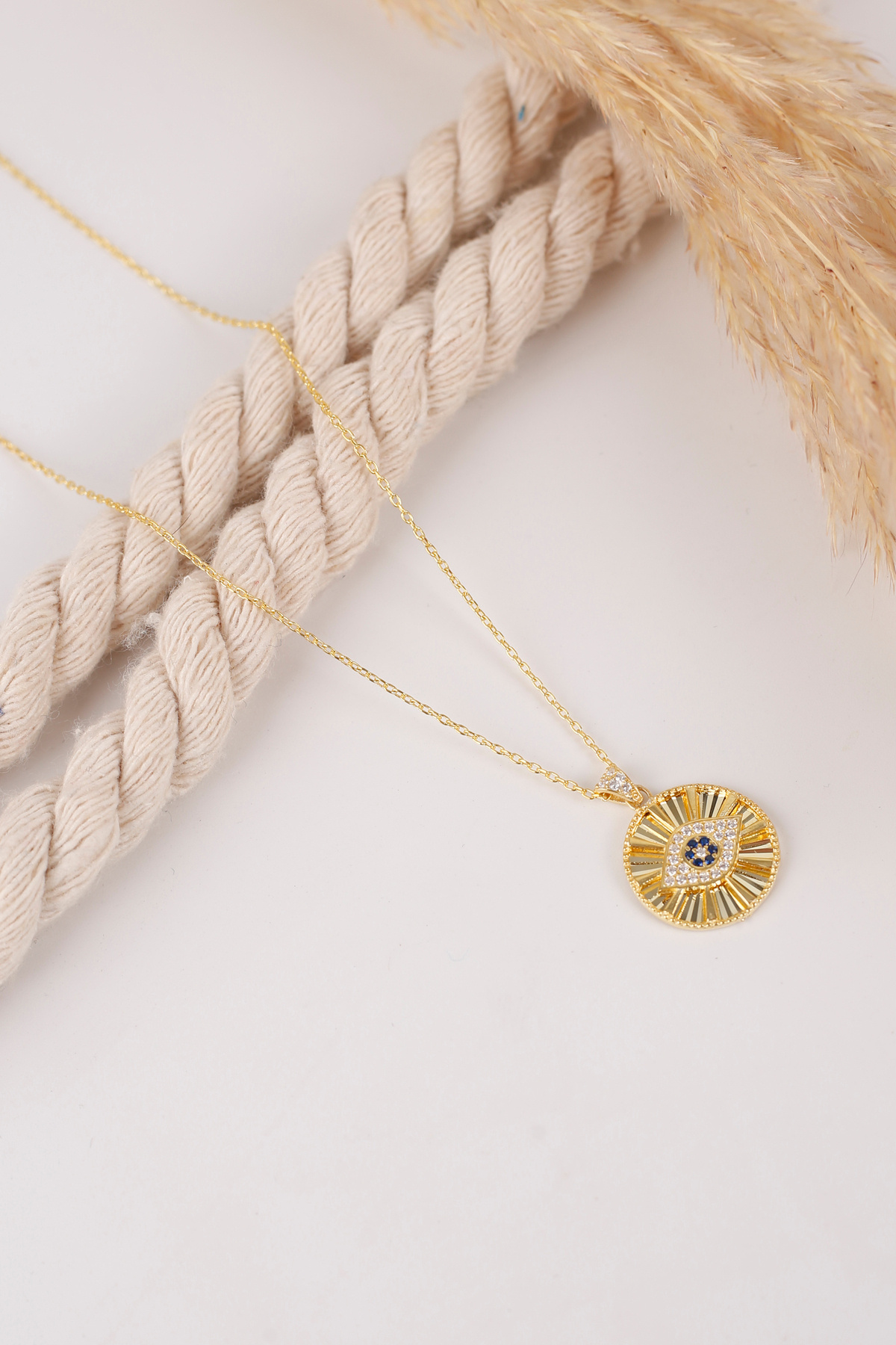 925 Ayar Gümüş İçi Özel Kesim Tılsım Göz Kolye 925 Ayar Gümüş İçi Özel Kesim Tılsım Göz Kolye SARİASLNCAT366 45 cm