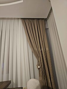 Pano Fon Göbek Ponponlu Cappuccino 1/3 Sık Pile (TEK PARÇA) Tavan Süs Braçöl Hediye Pano Fon Göbek Ponponlu Cappuccino 1/3 Sık Pile (TEK PARÇA) Tavan Süs Braçöl Hediye 09112 95 x 250