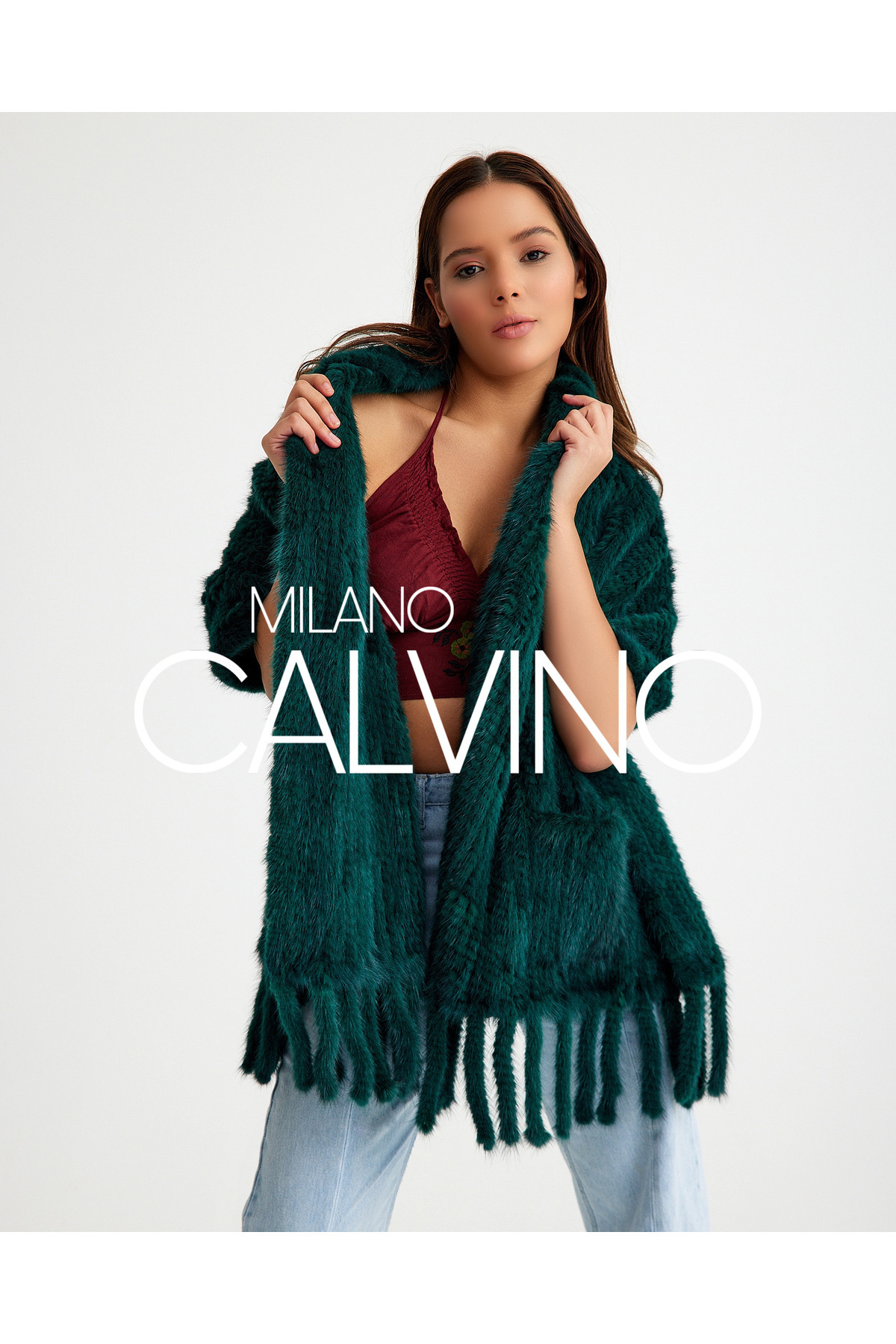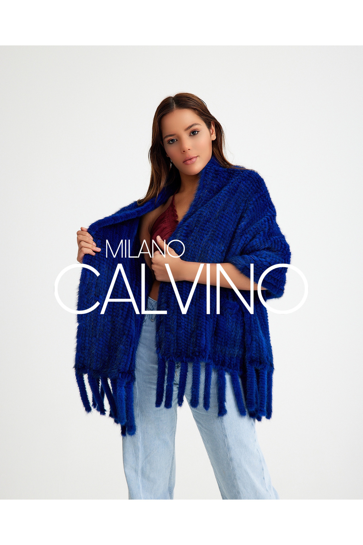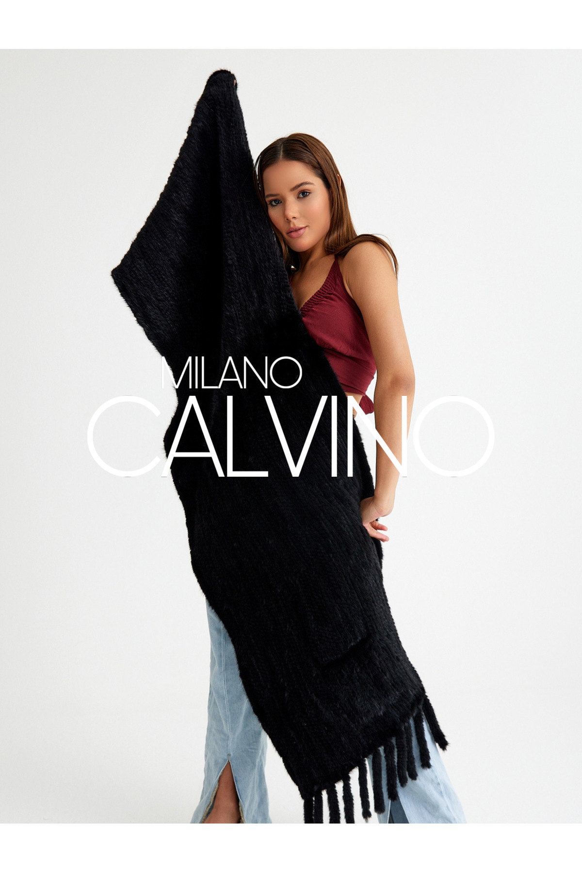 Vizon Örme Kürk Şal Vizon Örme Kürk Şal Mink Crochet Scarf 60 x 180