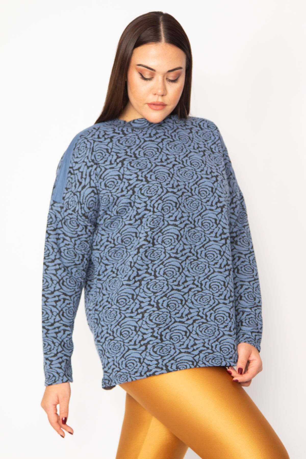 Kadın Büyük Beden Mavi Jakar Desenli Sıfır Yakalı Uzun Kollu Tunik 65n30418 Kadın Büyük Beden Mavi Jakar Desenli Sıfır Yakalı Uzun Kollu Tunik 65n30418 65N30418 58-60