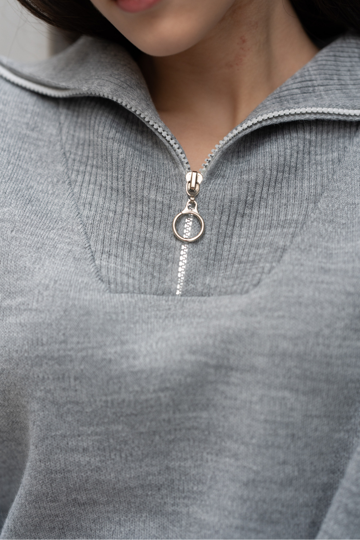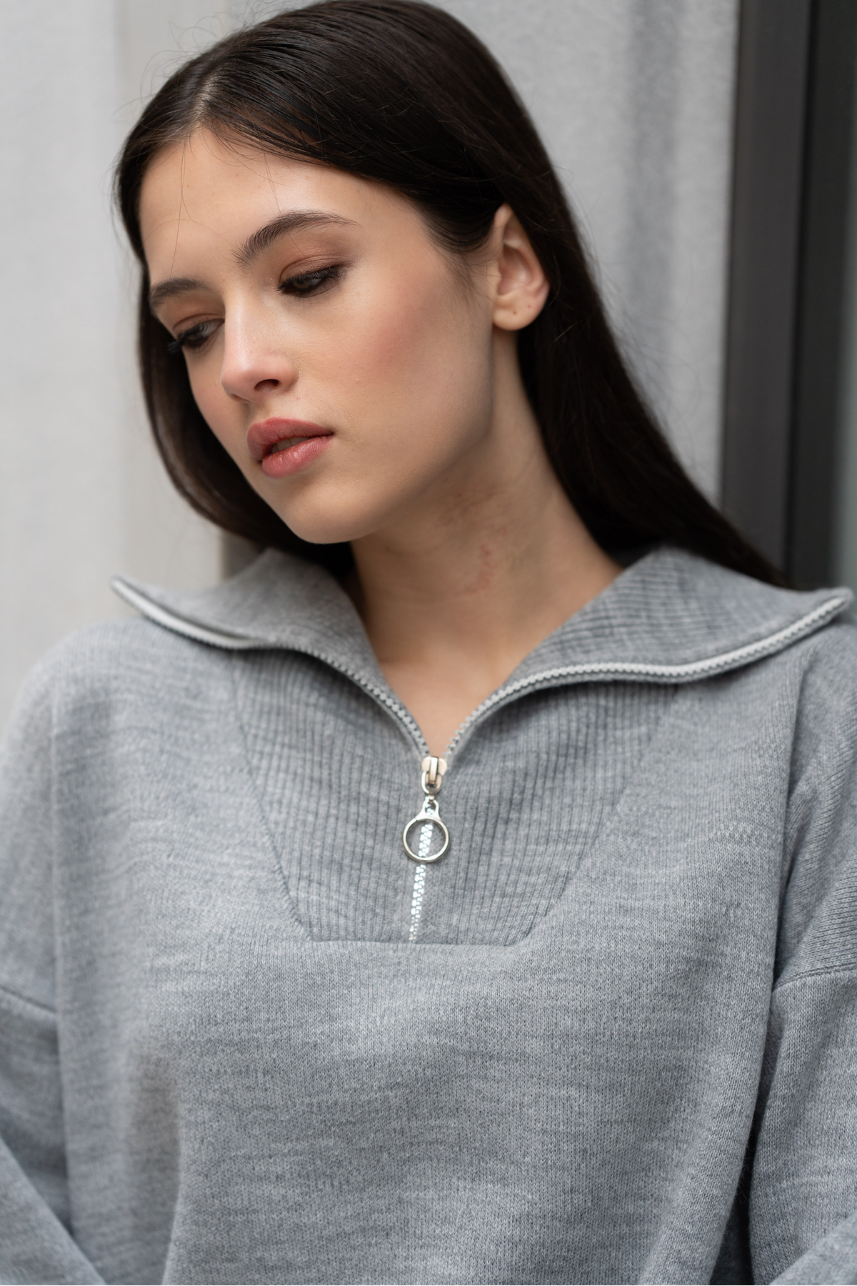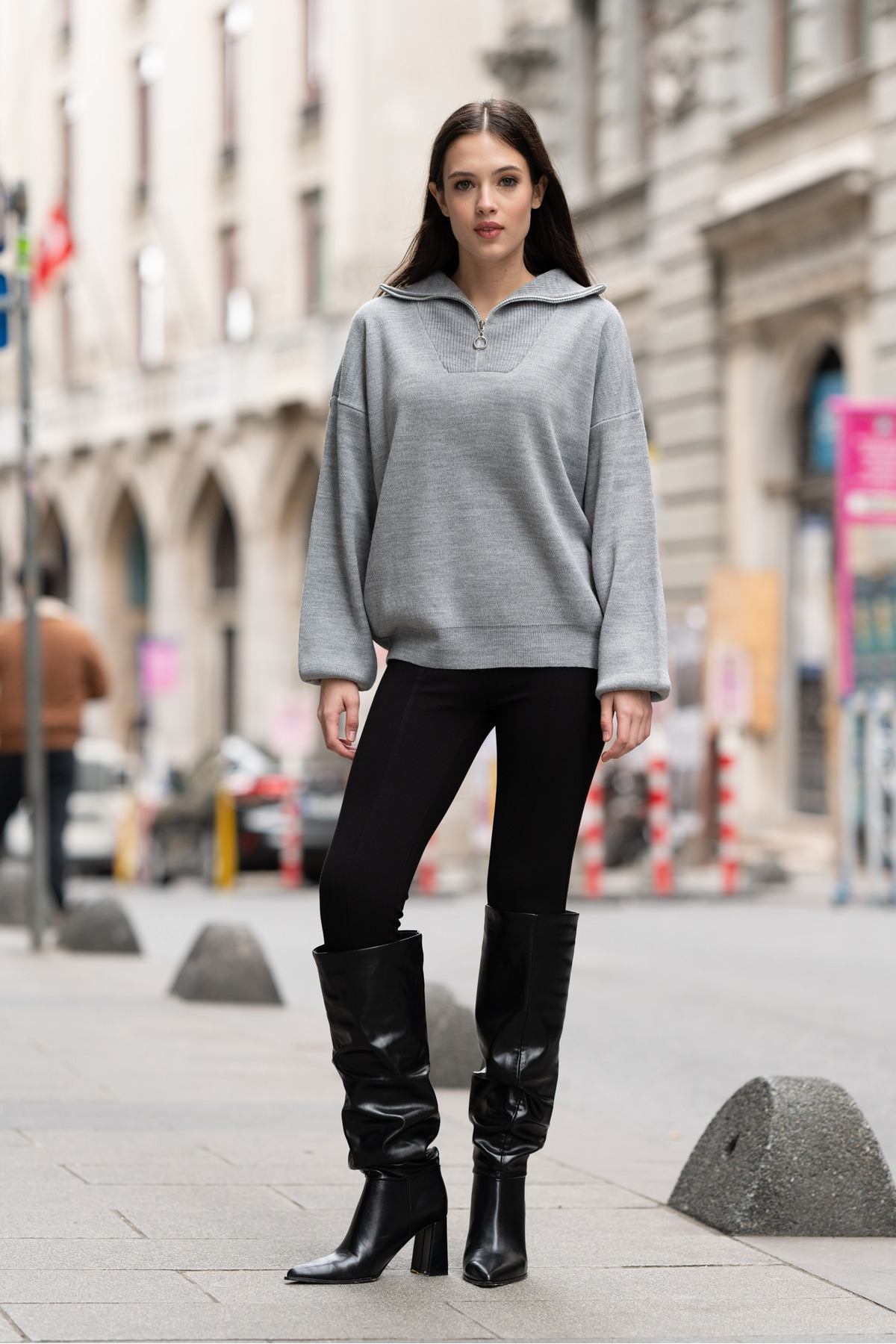 Fermuarlı Balıkçı Yaka Oversize Triko Kazak Fermuarlı Balıkçı Yaka Oversize Triko Kazak 24859 Fermuarlı Kazak Standart