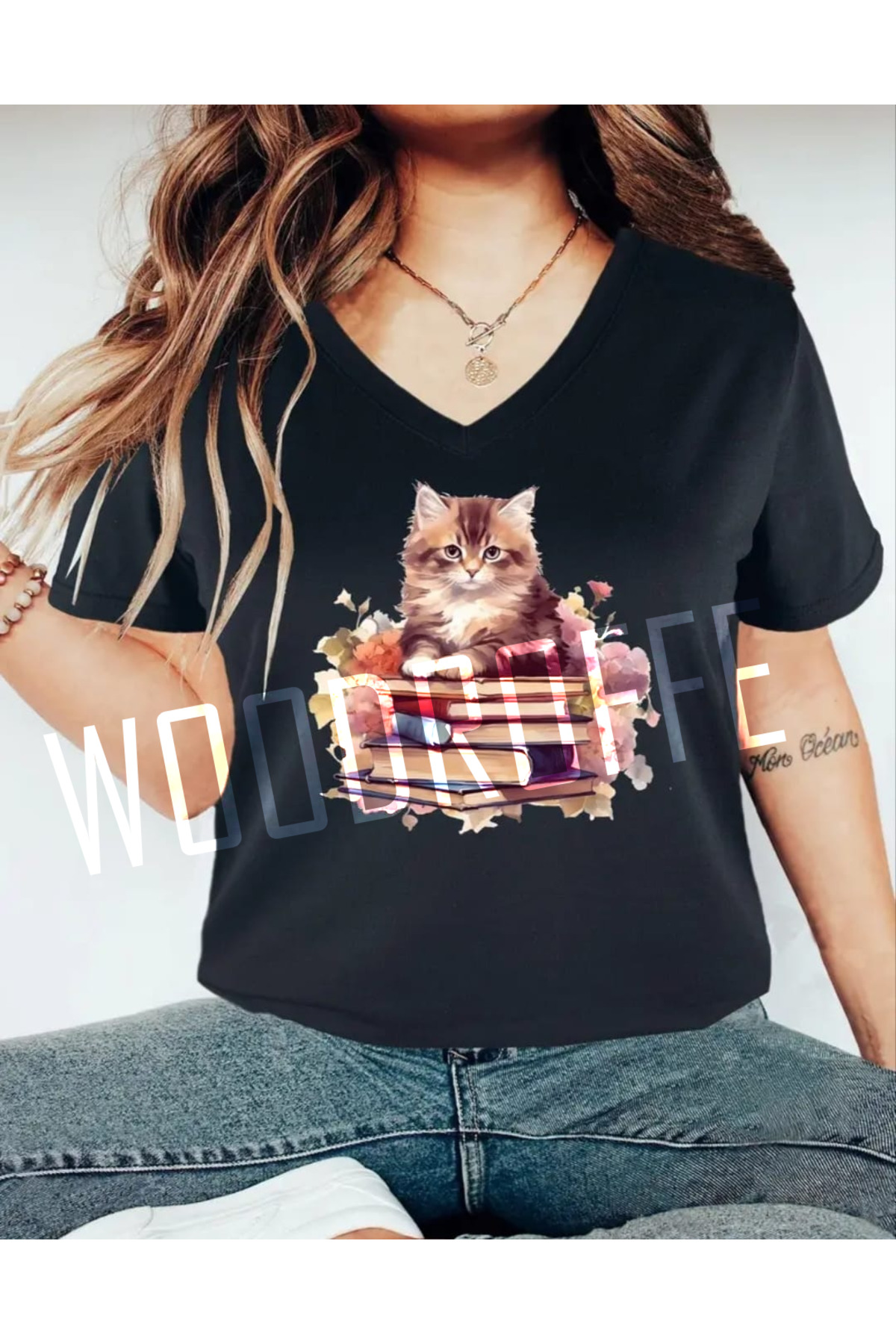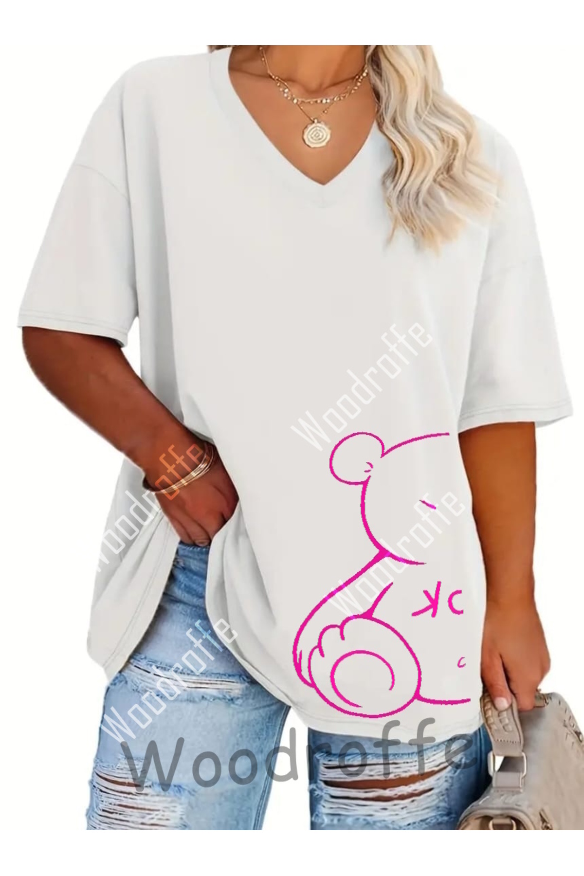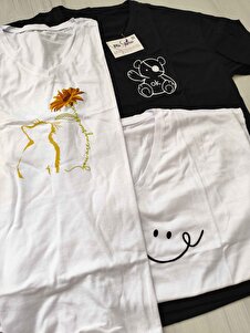 Kadın V Yaka Baskılı Siyah/Beyaz Salaş Oversize T-shirt Kadın V Yaka Baskılı Siyah/Beyaz Salaş Oversize T-shirt v-bsklı 2XL