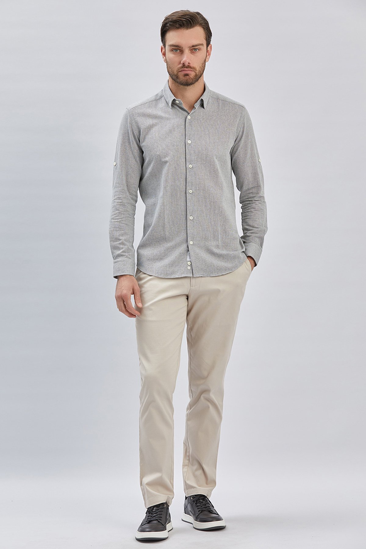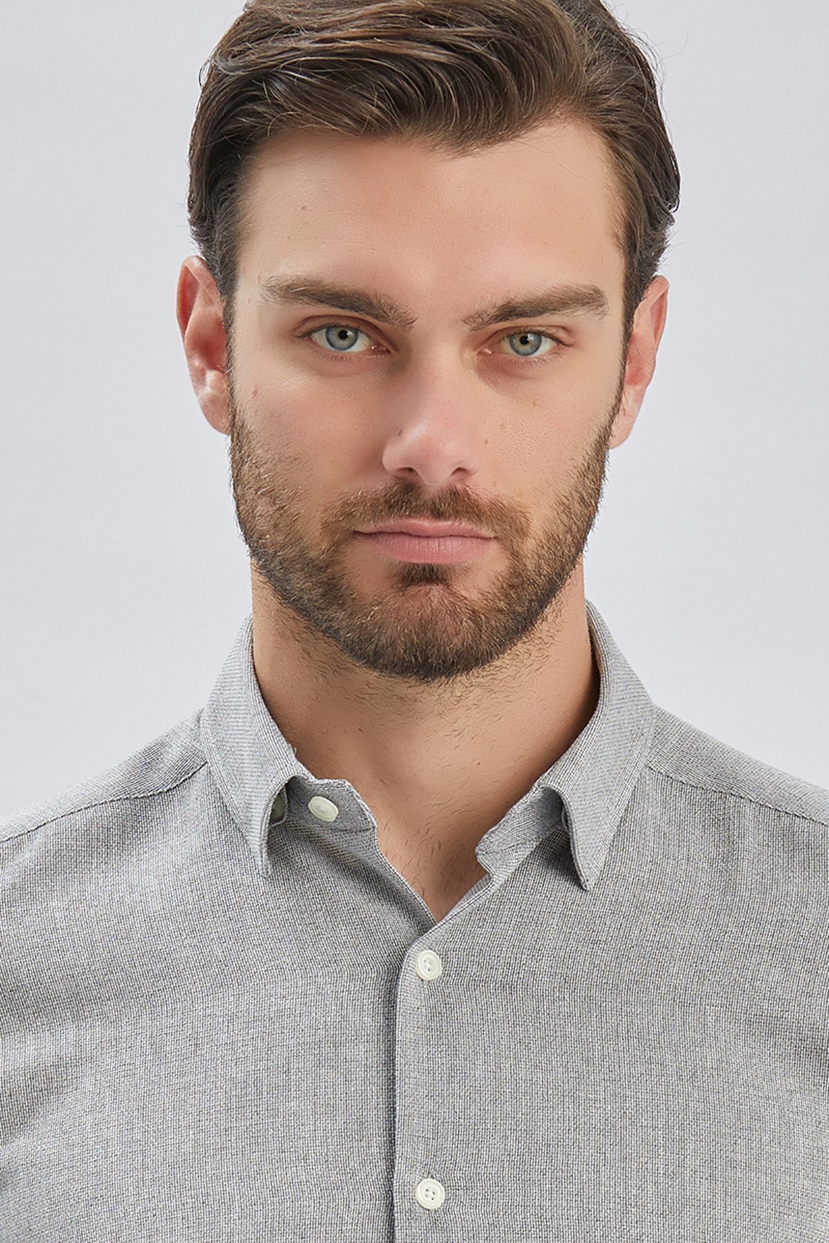 Gri Kısalabilir Kollu Armürlü Biritli Yaka Pamuklu Casual Slim Fit Dar Kesim Gömlek 1004240202 Gri Kısalabilir Kollu Armürlü Biritli Yaka Pamuklu Casual Slim Fit Dar Kesim Gömlek 1004240202 1004240202_100 XL