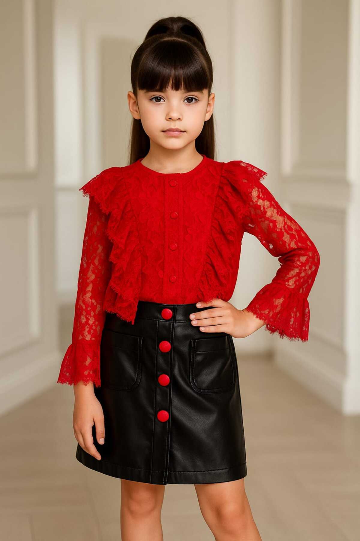 kız cocuk eteklı derı etek dantellı gomlek takım 3 parca kız cocuk eteklı derı etek dantellı gomlek takım 3 parca 050 7-8