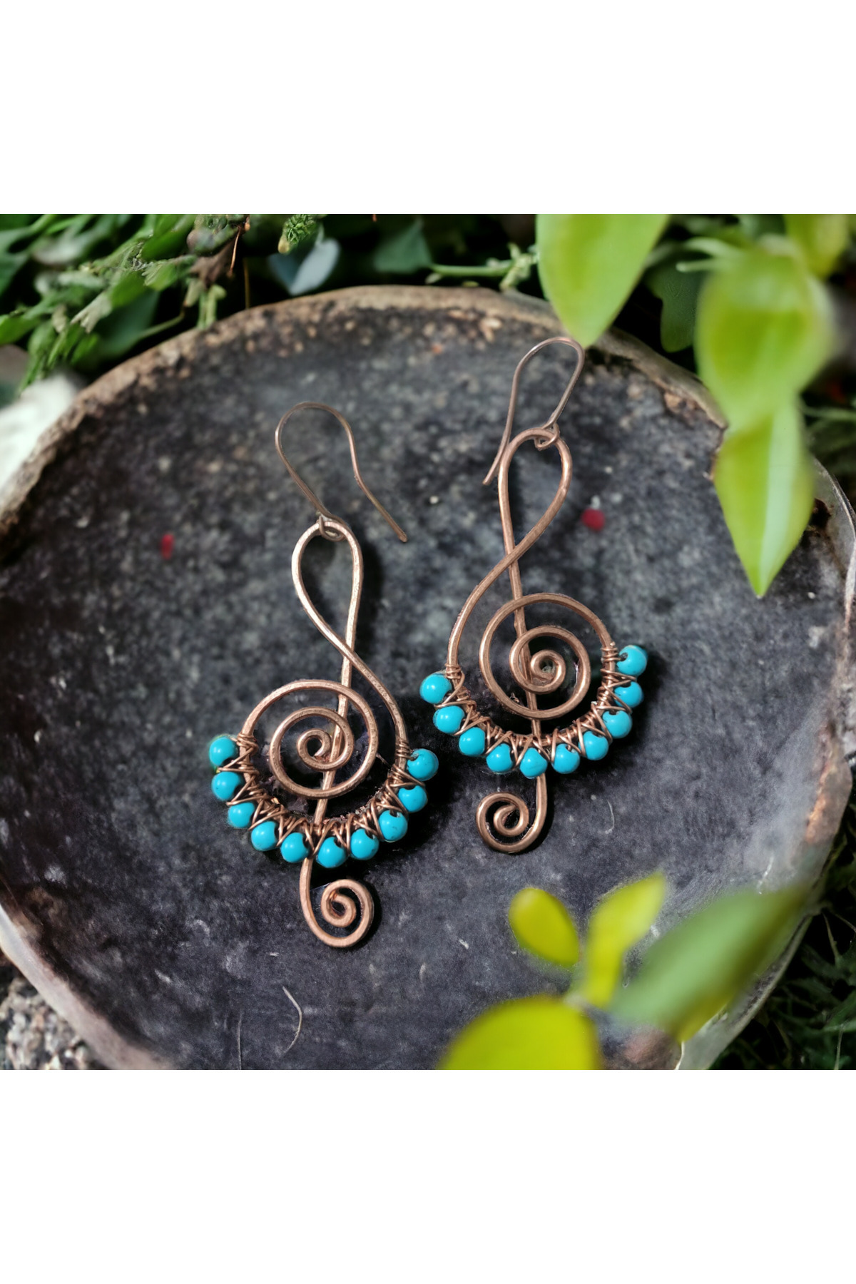Otantik Bakır Tel Sarma El Yapımı Küpe Otantik Bakır Tel Sarma El Yapımı Küpe 2184 S