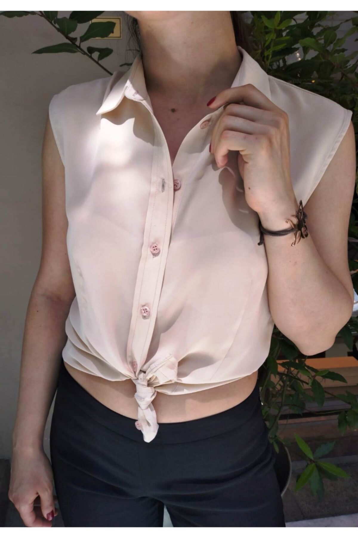 Kadın Ekru Kolsuz Beyaz Gömlek Düğmeli Kadın Ekru Kolsuz Beyaz Gömlek Düğmeli KOLSUZ-NB-10005 XL