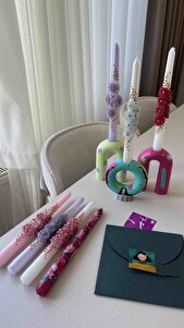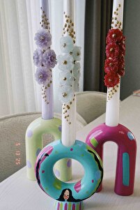 2'li Çiçekli Şamdan Mumu Seti 2'li Çiçekli Şamdan Mumu Seti soi00293 تک سایز