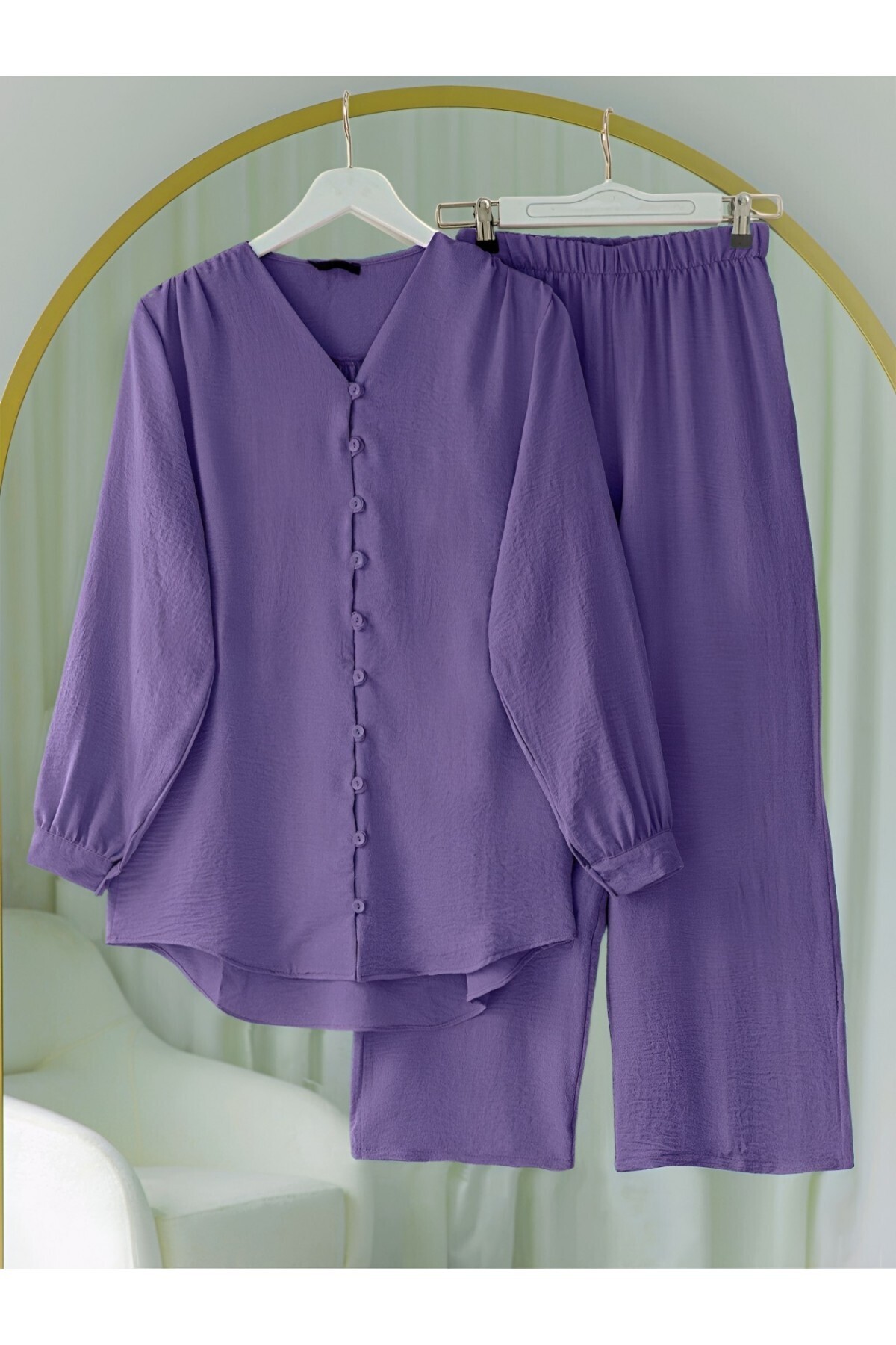 Hasır Kemerli Cepli Keten Takım -lila Hasır Kemerli Cepli Keten Takım -lila TY218-361- 42