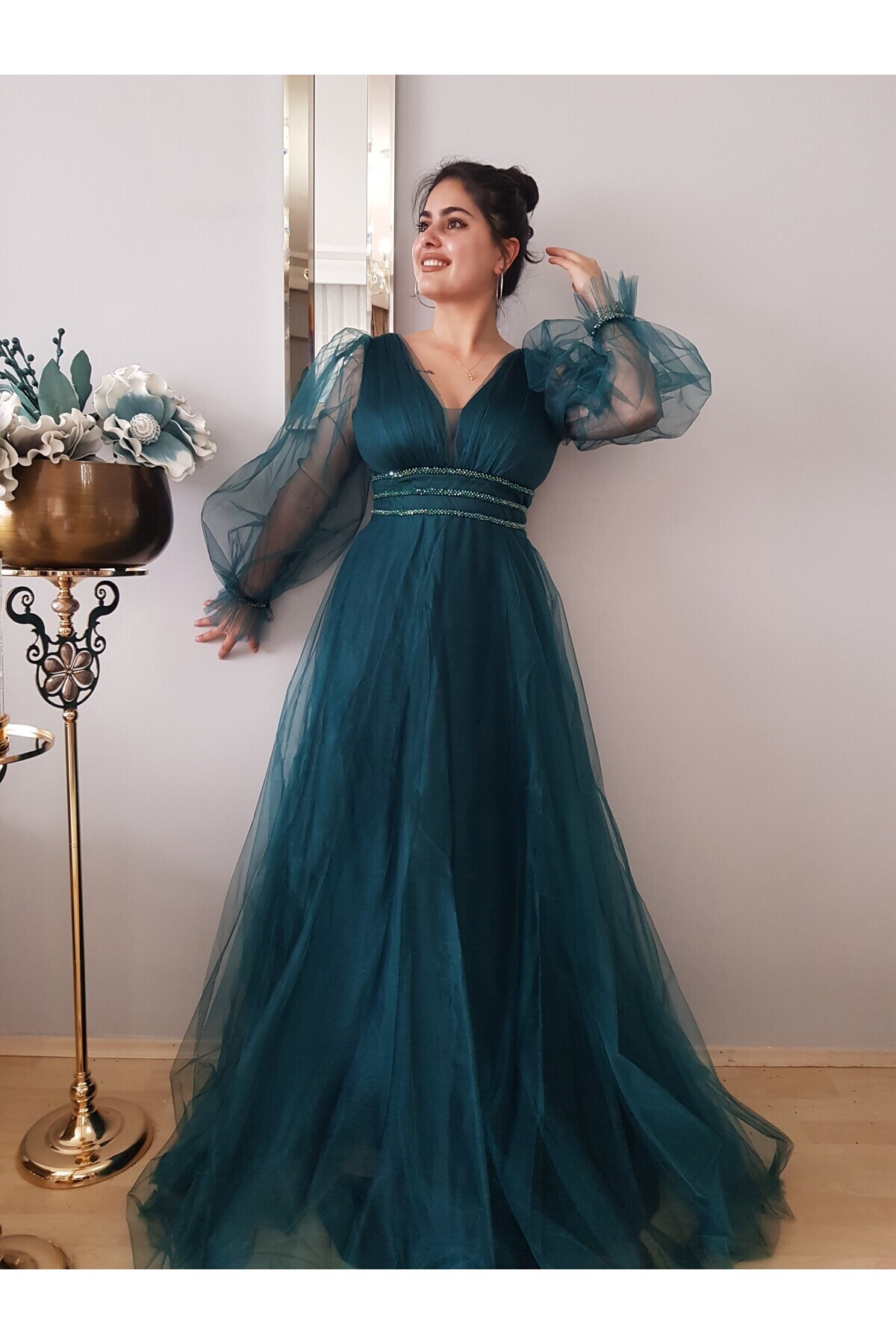 Şifon Kumaş V Yaka Büzgü Detaylı Maxi Elbise - BUZ MAVİ Şifon Kumaş V Yaka Büzgü Detaylı Maxi Elbise - BUZ MAVİ GYM-1519 42