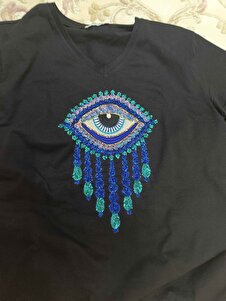 Kadın Siyah V Yaka Büyük Beden Göz Pul Payet İşlemeli %100 Pamuk Büyük Beden Tişört Kadın Siyah V Yaka Büyük Beden Göz Pul Payet İşlemeli %100 Pamuk Büyük Beden Tişört BYK42 3XL
