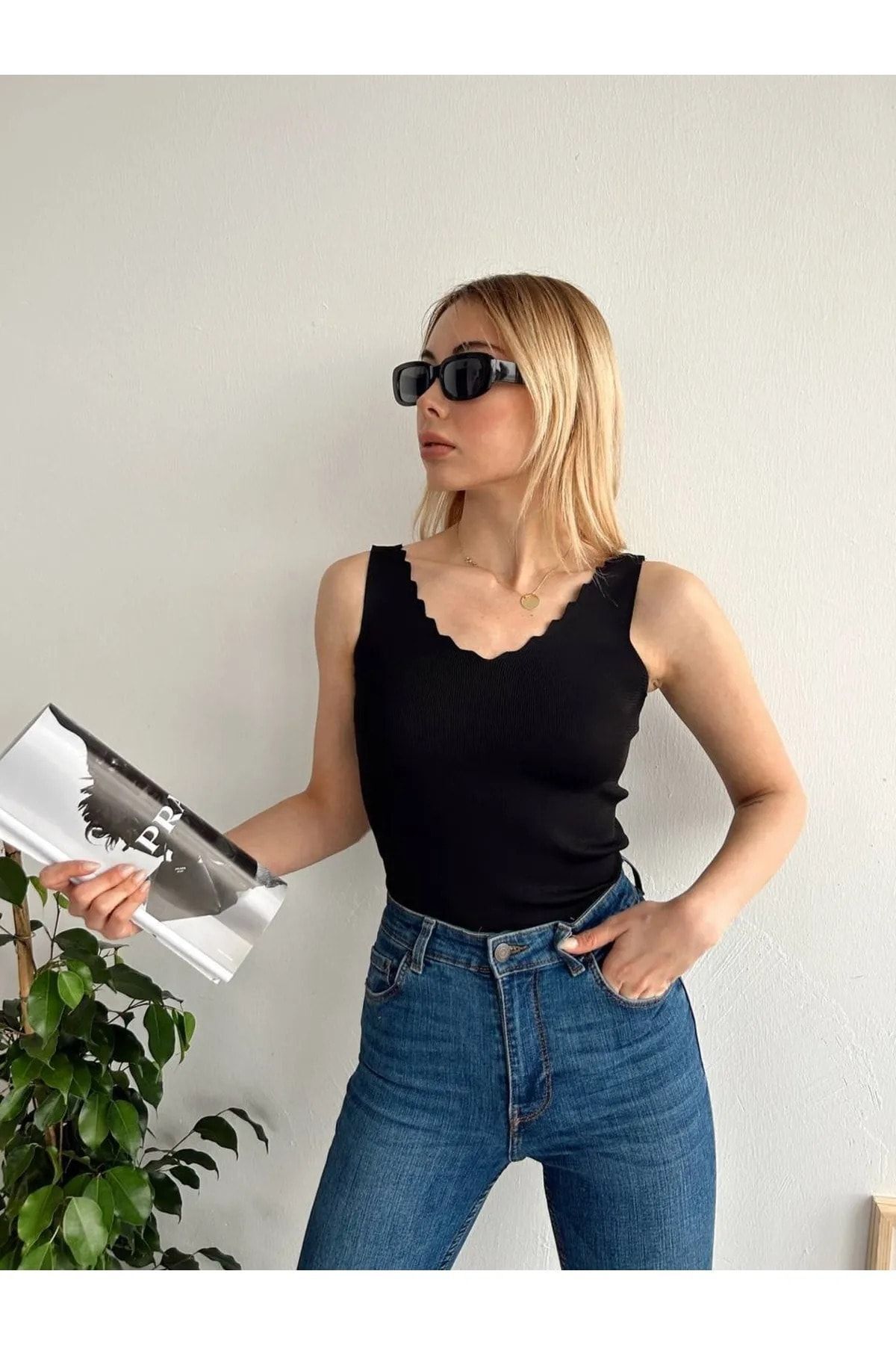 Kadın Merdiven Yaka Askılı Triko Bluz Kadın Merdiven Yaka Askılı Triko Bluz JCNW05 Standart