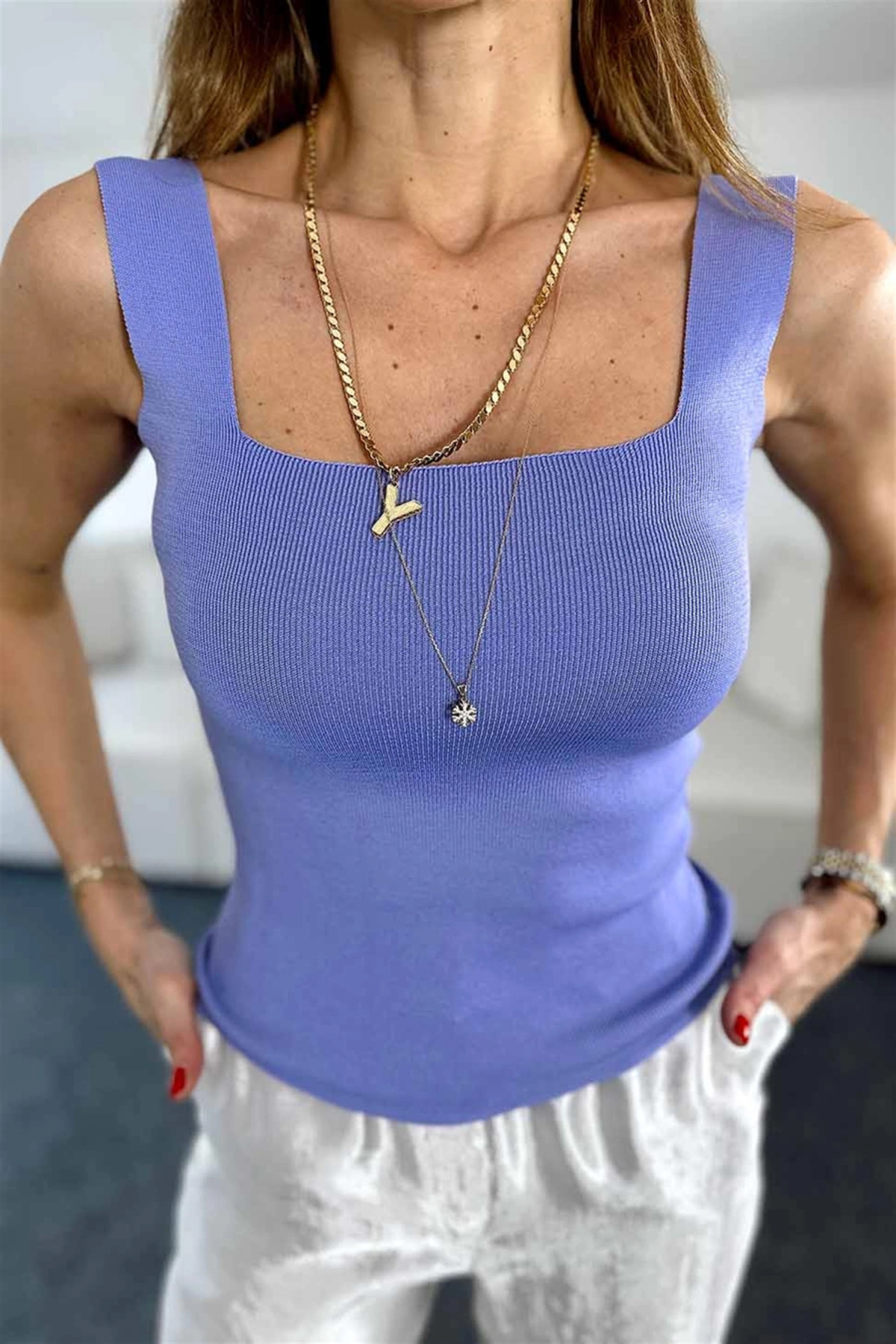 Kadın Merdiven Yaka Askılı Triko Bluz Kadın Merdiven Yaka Askılı Triko Bluz JCNW05 Standart