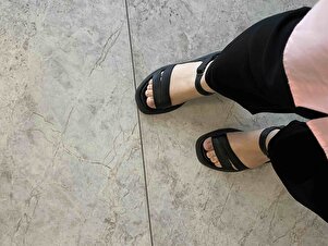 Siyah Deri Kadın Dolgu Topuk Sandalet Siyah Deri Kadın Dolgu Topuk Sandalet BRACH 40