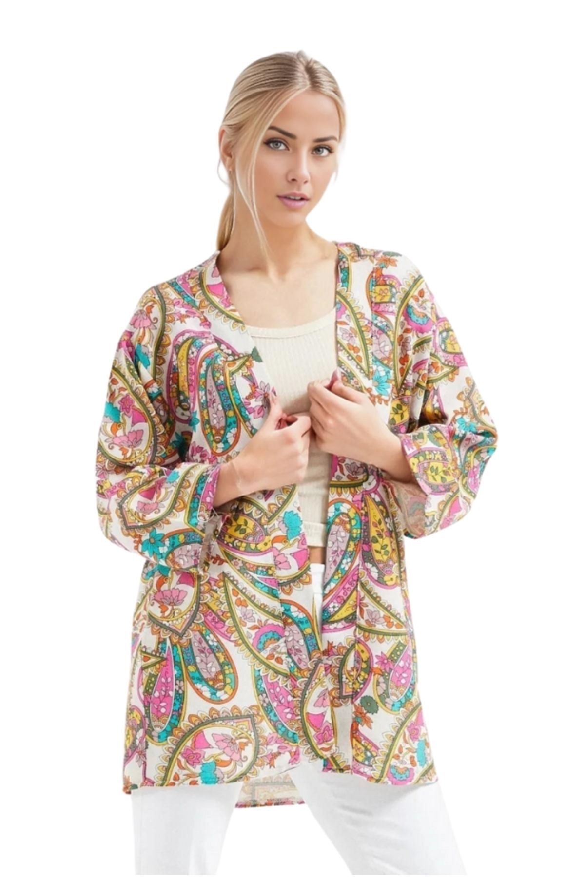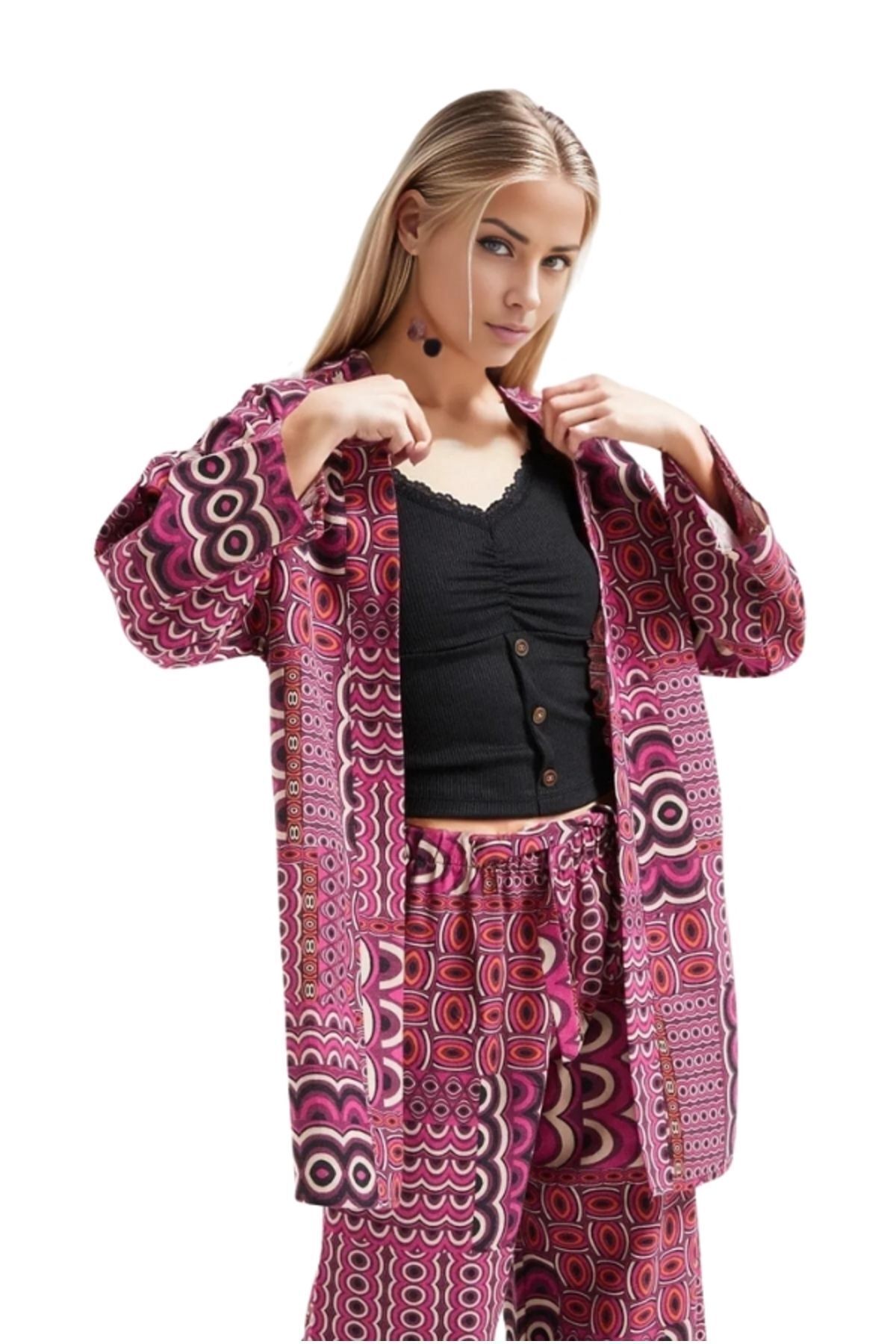 Kadın Şal Desenli Pembe Salaş Yazlık Plaj Kimono Kadın Şal Desenli Pembe Salaş Yazlık Plaj Kimono KTN-MSL-10001 XL