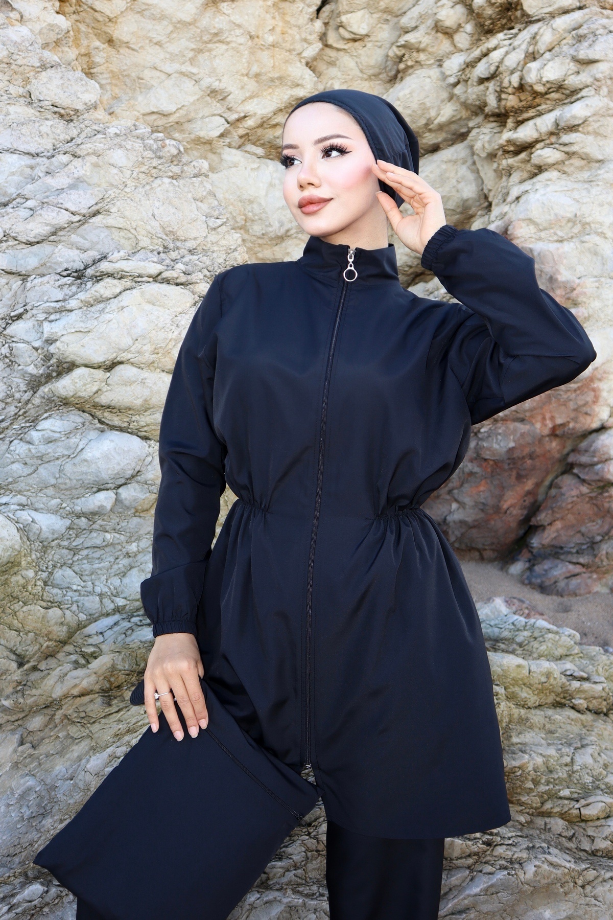 Atlas Beli Lastikli Tesettür Mayo 4lü Takım Siyah Atlas Beli Lastikli Tesettür Mayo 4lü Takım Siyah 2038 42-44