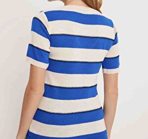 Kadın V Yaka Mavi Beyaz Çizgili Bluz 15869 Kadın V Yaka Mavi Beyaz Çizgili Bluz 15869 15869BGD19 Standart