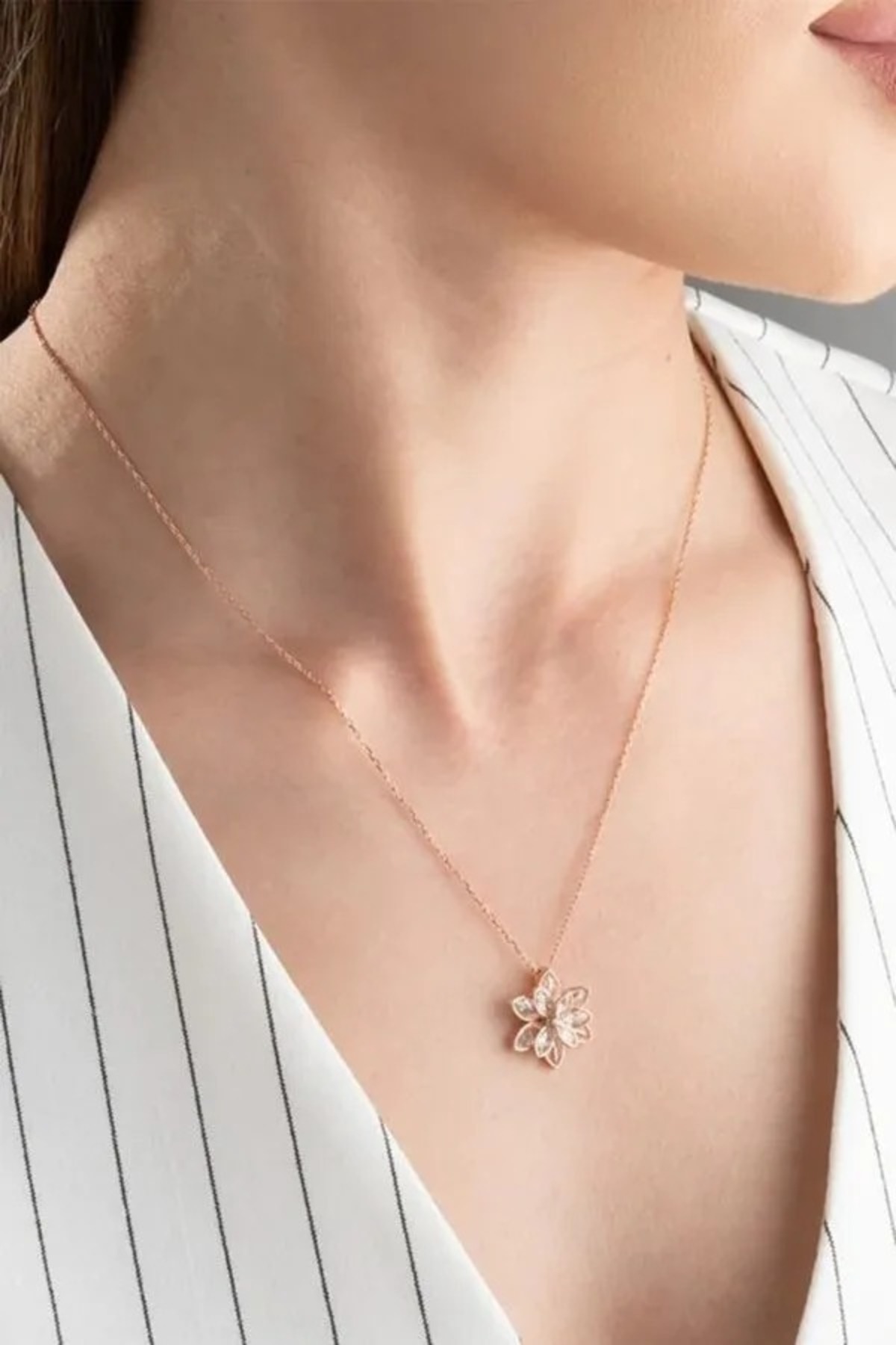 Çelik kamelya çiçeği kolye lotus kolye Çelik kamelya çiçeği kolye lotus kolye K1001H10 45 cm