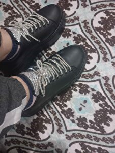 Kadın Bağcıklı Günlük Taşlı Kadın Sneaker Ayakkabı Siyah Kadın Bağcıklı Günlük Taşlı Kadın Sneaker Ayakkabı Siyah Bağçıklı079 40