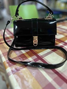 Kadın Siyah Rugan Toka Detaylı Zincirli El Omuz Çantası Kadın Siyah Rugan Toka Detaylı Zincirli El Omuz Çantası MBOOO703 تک سایز
