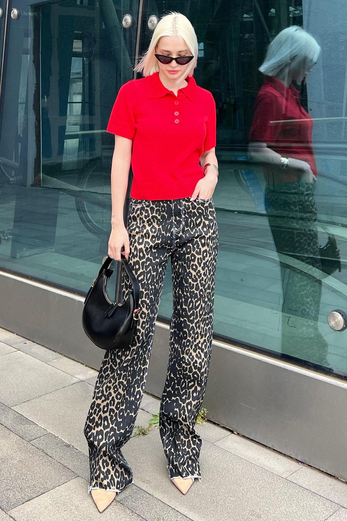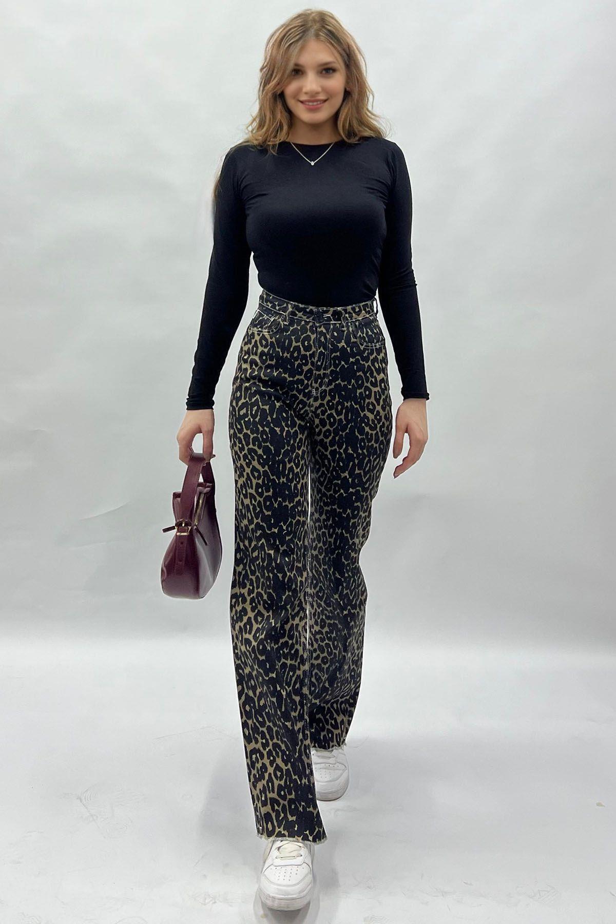 Siyah Leopar Palazzo Kadın Jean Pantolon MG2063 Siyah Leopar Palazzo Kadın Jean Pantolon MG2063 46