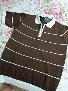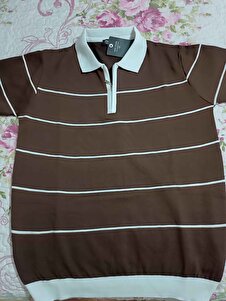 Kahverengi Çizgili Polo Yaka Fermuarlı Tişört 6898 Kahverengi Çizgili Polo Yaka Fermuarlı Tişört 6898 2XL