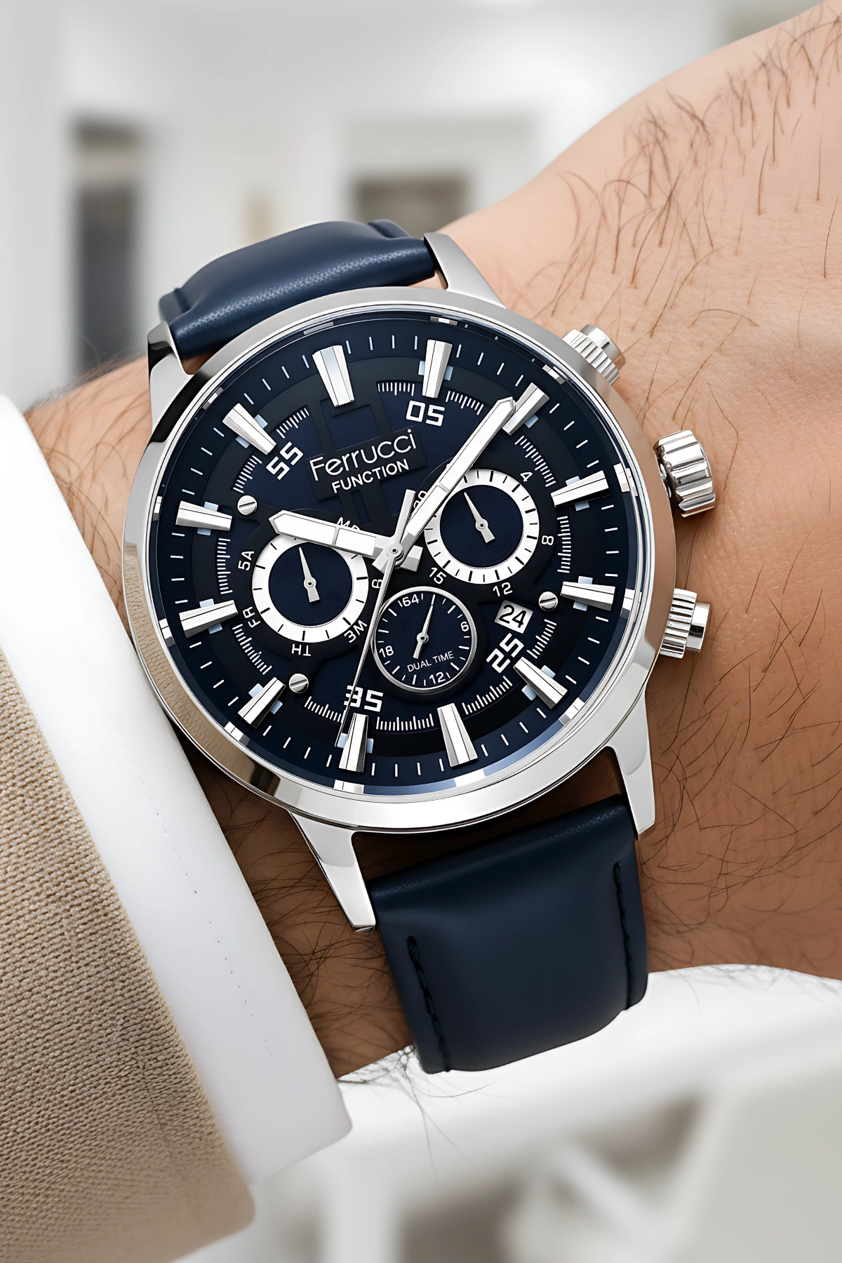 Lacivert Renk, Deri Kordon, Function Erkek Kol Saati+Bileklik zmfer158 Lacivert Renk, Deri Kordon, Function Erkek Kol Saati+Bileklik zmfer158 تک سایز